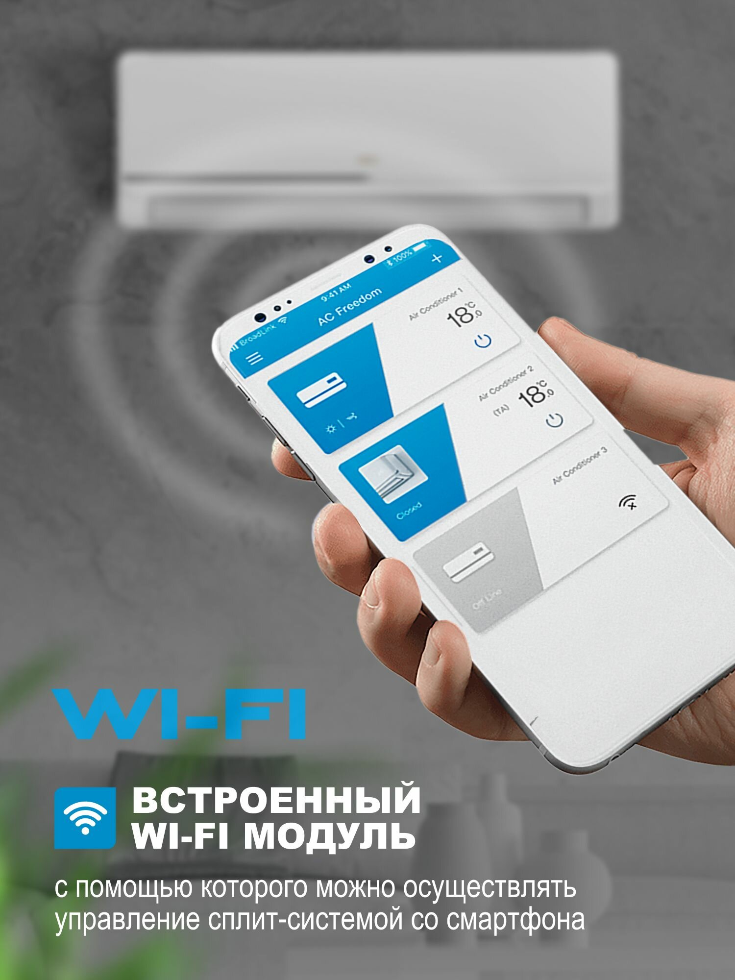 Кондиционер CENTEK CT-65F18 Wi-Fi (50 кв. м) A класс Компрессор Toshiba LED дисплей 4D i FEEL Wi Fi (встроенный модуль)