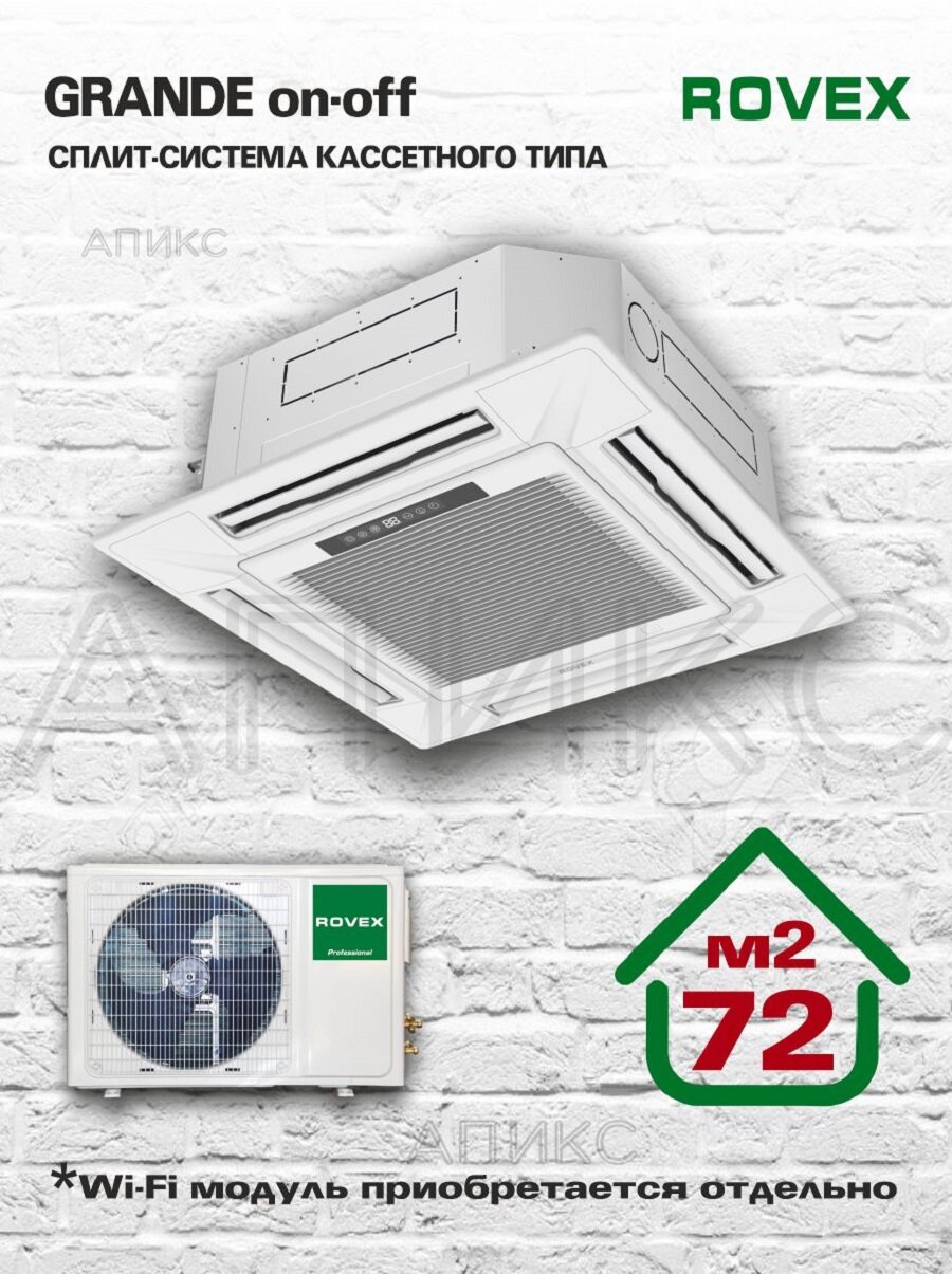 Купить Сплит-система Rovex RB-24HR3, кассетная, 72м², охлаждение, обогрев, управление пультом ДУ