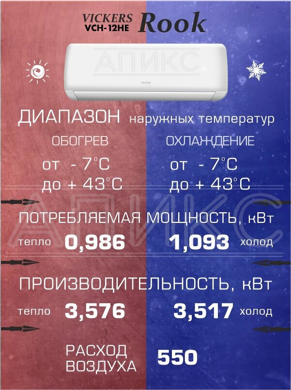 Сплит-система VICKERS VCH-12HE, Rook, настенного типа, 36 кв. м, A класс интересное:
