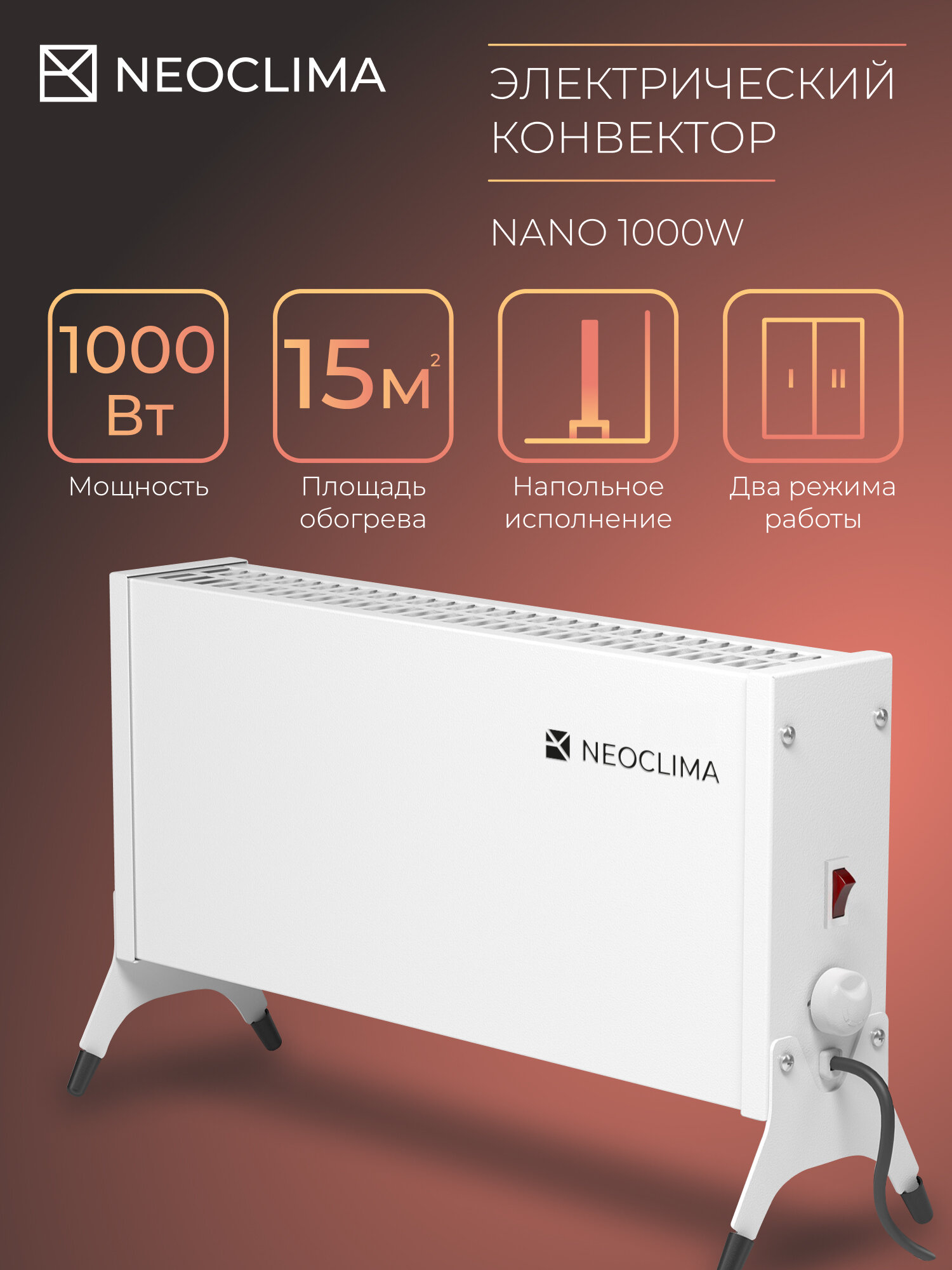 Nano 1000W Электроконвектор Nano марки "Neoclima" 1.0 квт (напольное крепление) интересное: