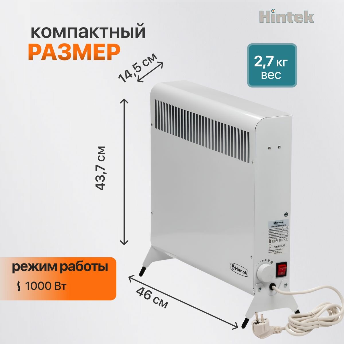 Конвектор электрический Hintek Power 1500M SE, 1500 Вт, 20 м2 /обогреватель электрический