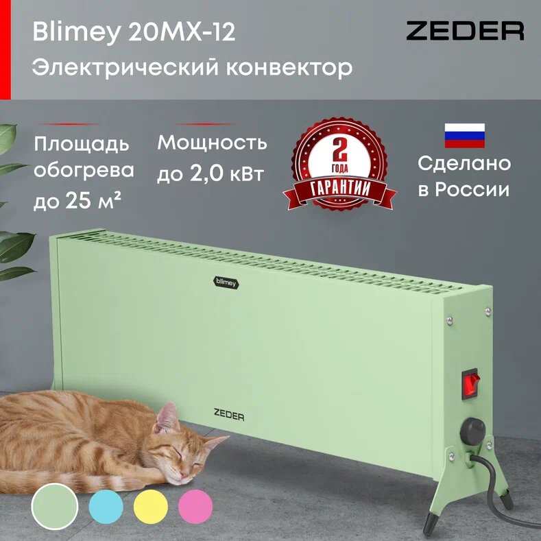 Купить Конвектор обогреватель электрический ZEDER 20MX-12 GREEN, серия Blimey. Механическое управление