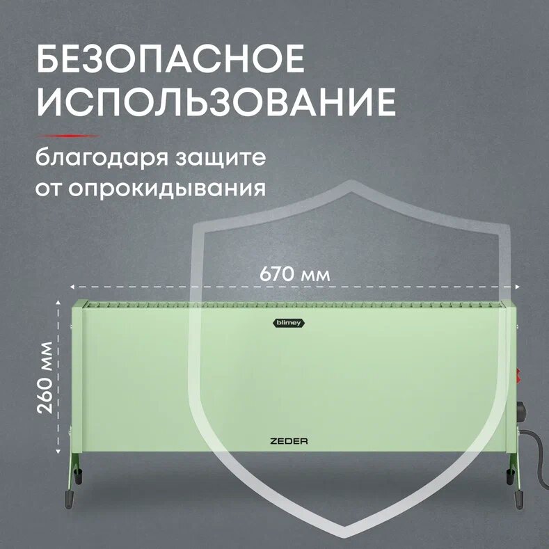Конвектор обогреватель электрический ZEDER 20MX-12 GREEN, серия Blimey. Механическое управление интересное: