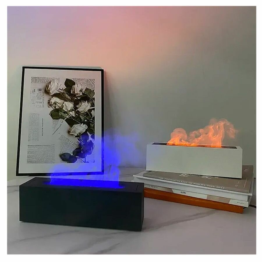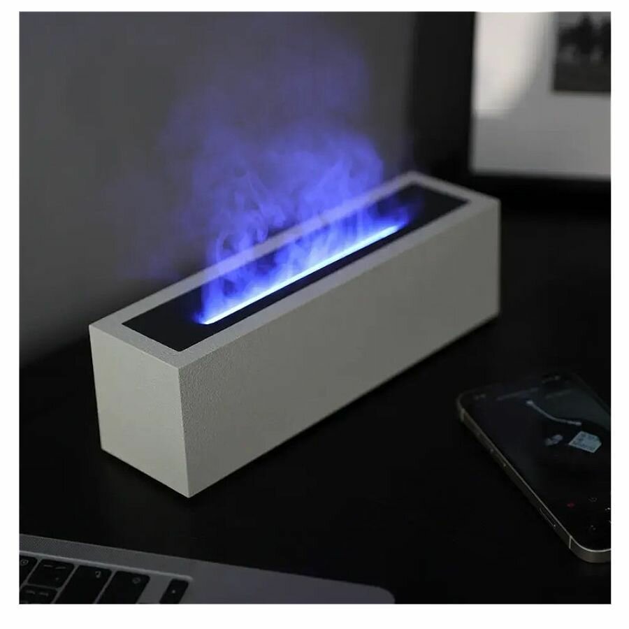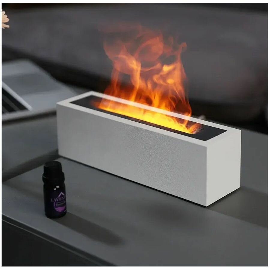 Аромадиффузор увлажнитель воздуха с подсветкой 7 цветов с эффектом горящего огня для дома и офиса белый