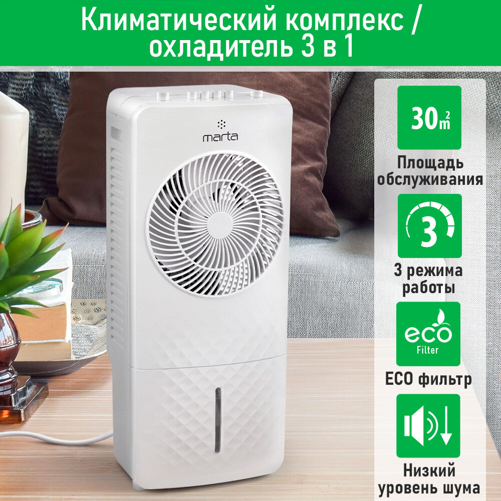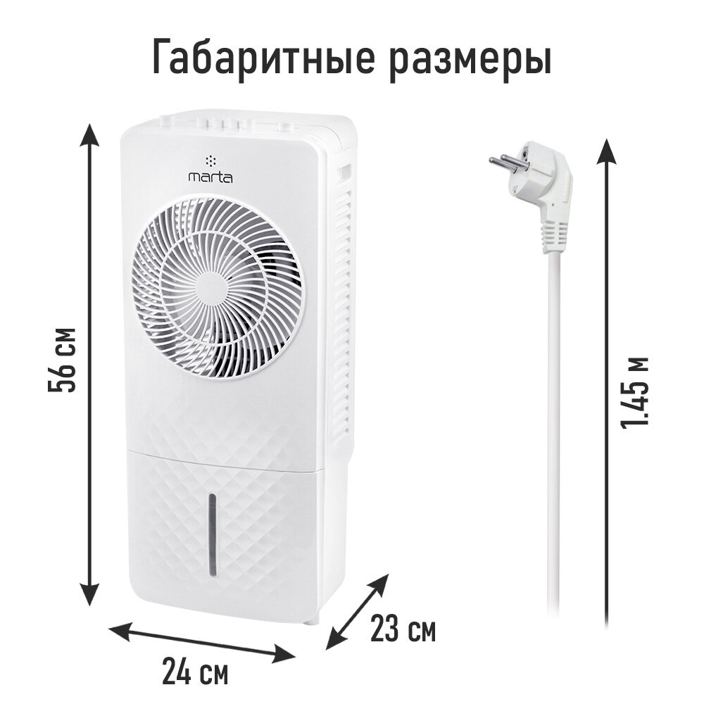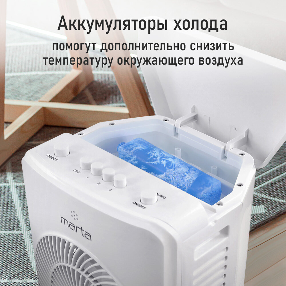 Кондиционер охладитель MARTA MT-CO4900A вентилятор увлажнитель воздуха белый интересное: