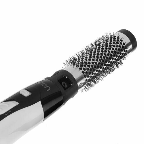 | Минусы: | На самом конце щетки нету носика, чтобы держать двумя руками насадку при накручивание локона, там малюсенький выступ, он горячий. |