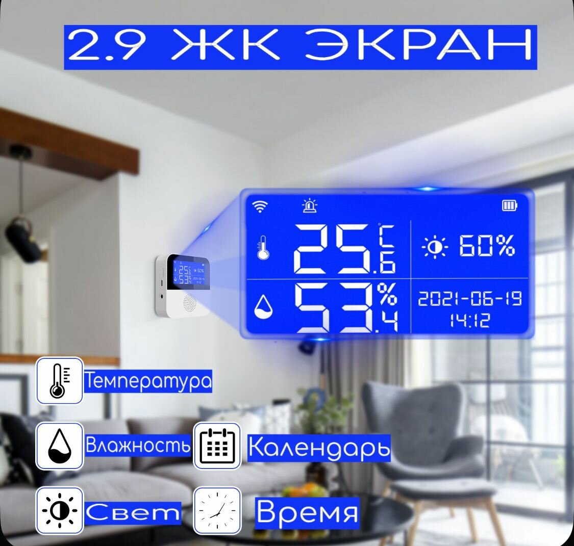 Умный гигрометр Датчик температуры, влажности и освещенности Tuya WIFI, дополнительный внешний датчик температуры, с Алисой через Digma интересное: