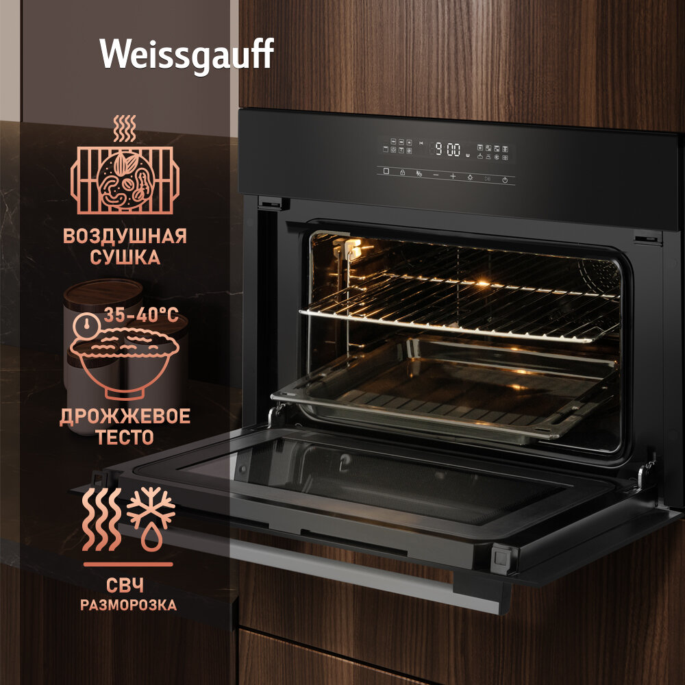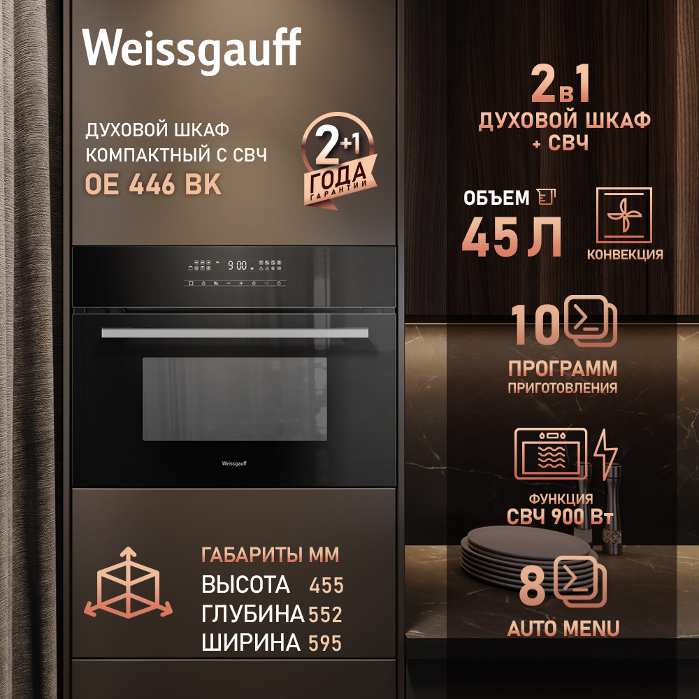 Встраиваемый компактный духовой шкаф с СВЧ Weissgauff OE 446 BK интересное: