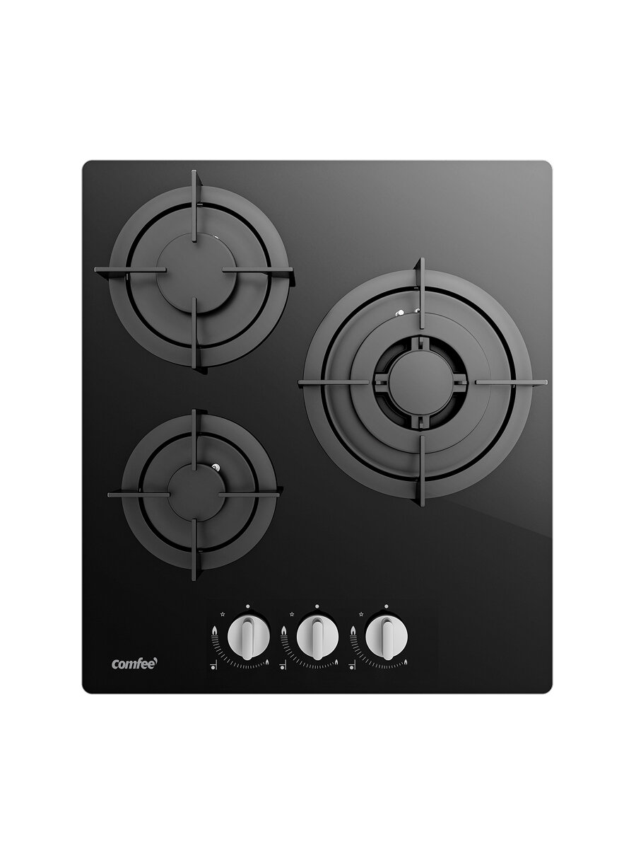 Купить Газовая варочная панель Comfee CGH401GB, 45 см, 3 конфорки, WOK конфорка, электроподжиг, газ-контроль, закаленное стекло, черный