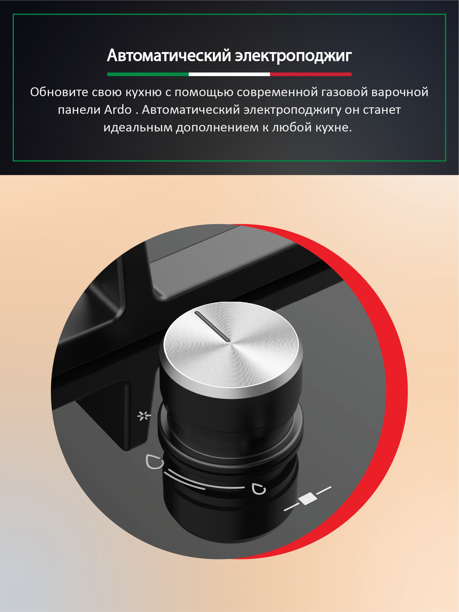 Газовая варочная панель GHS64GB2 Ardo 60 см, черное закаленное стекло, газ-контроль, автоматический электроподжиг интересное: