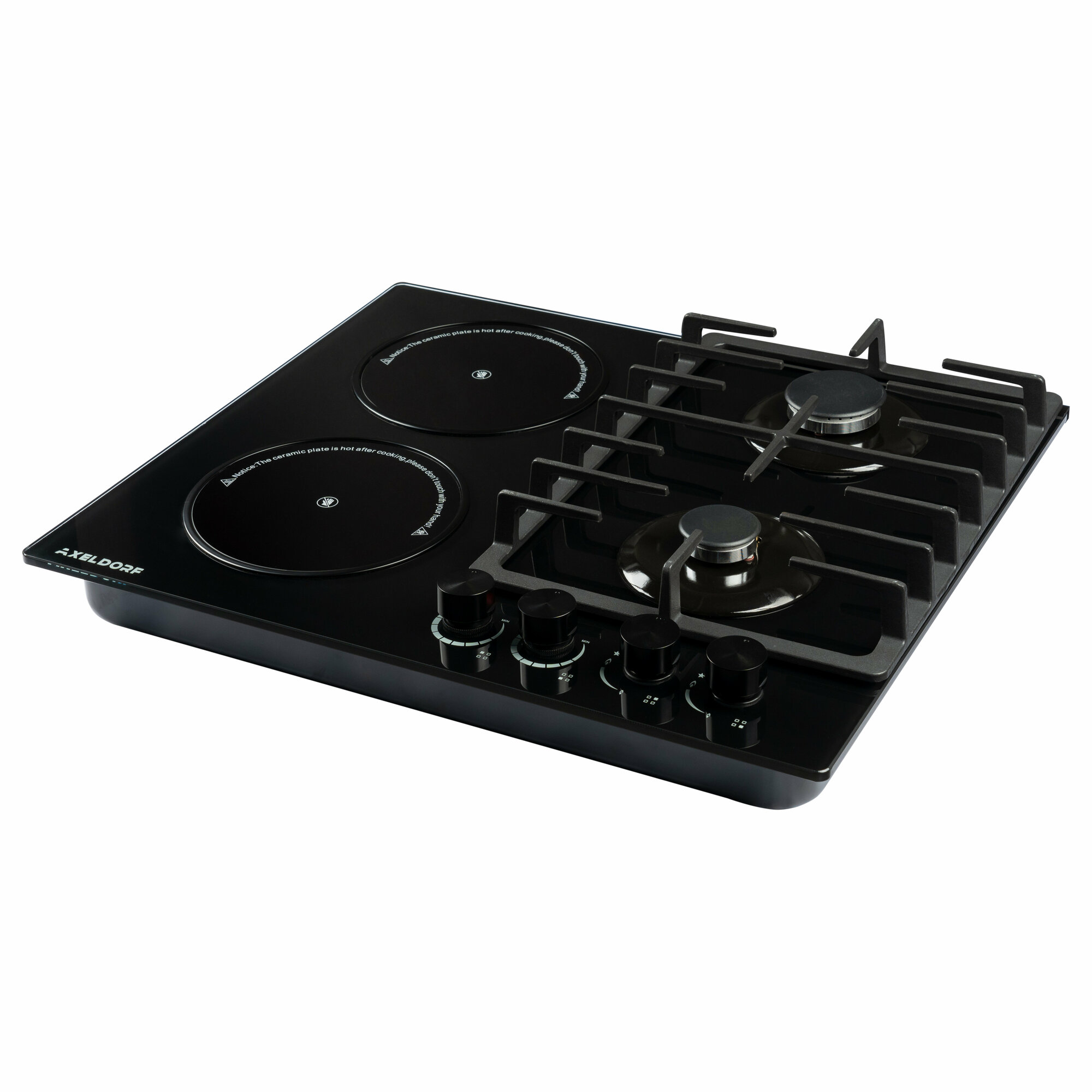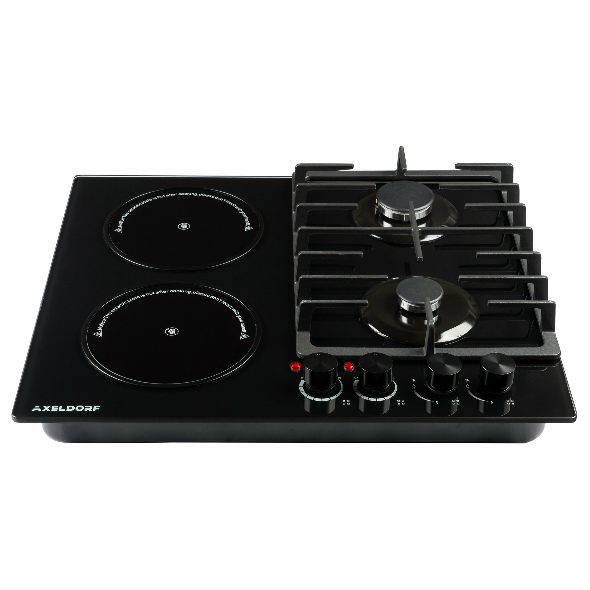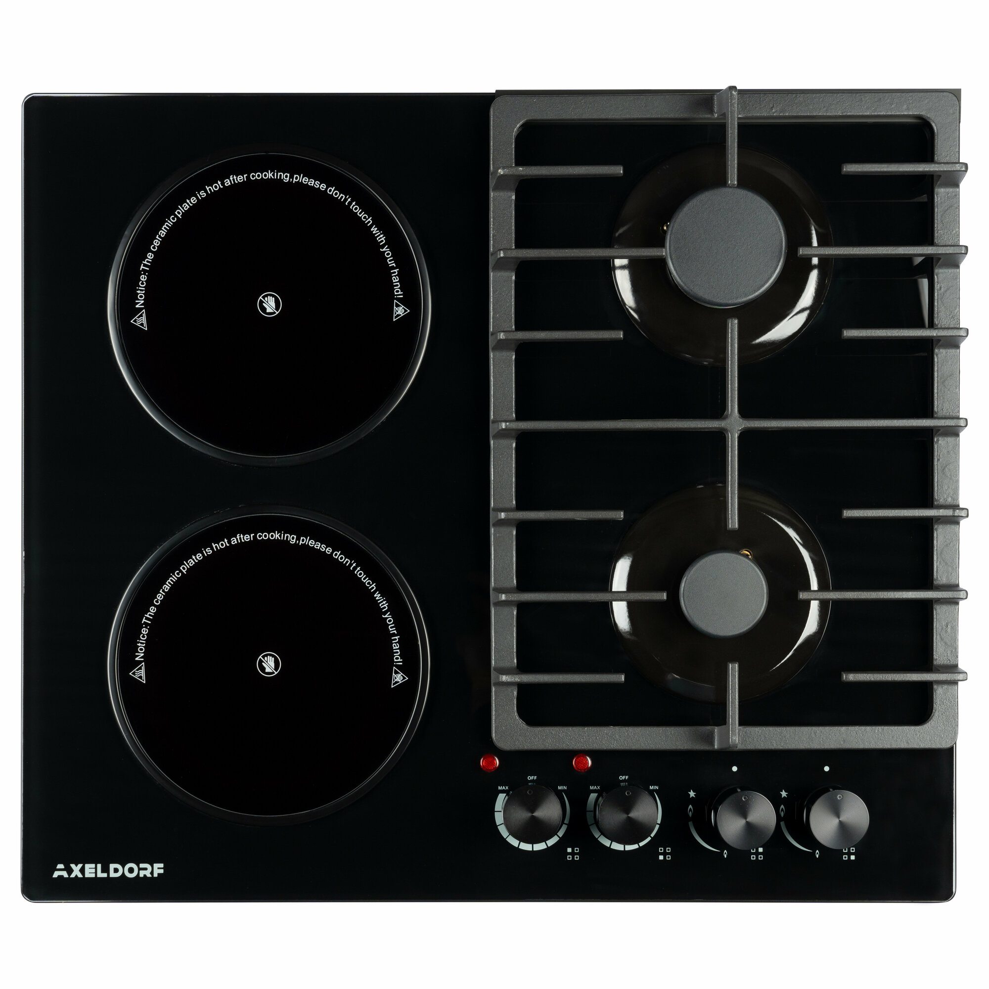 Купить Варочная панель AXELDORF 2 газ + 2 электро, 4 конфорки, черная, закаленное стекло, 59x51см