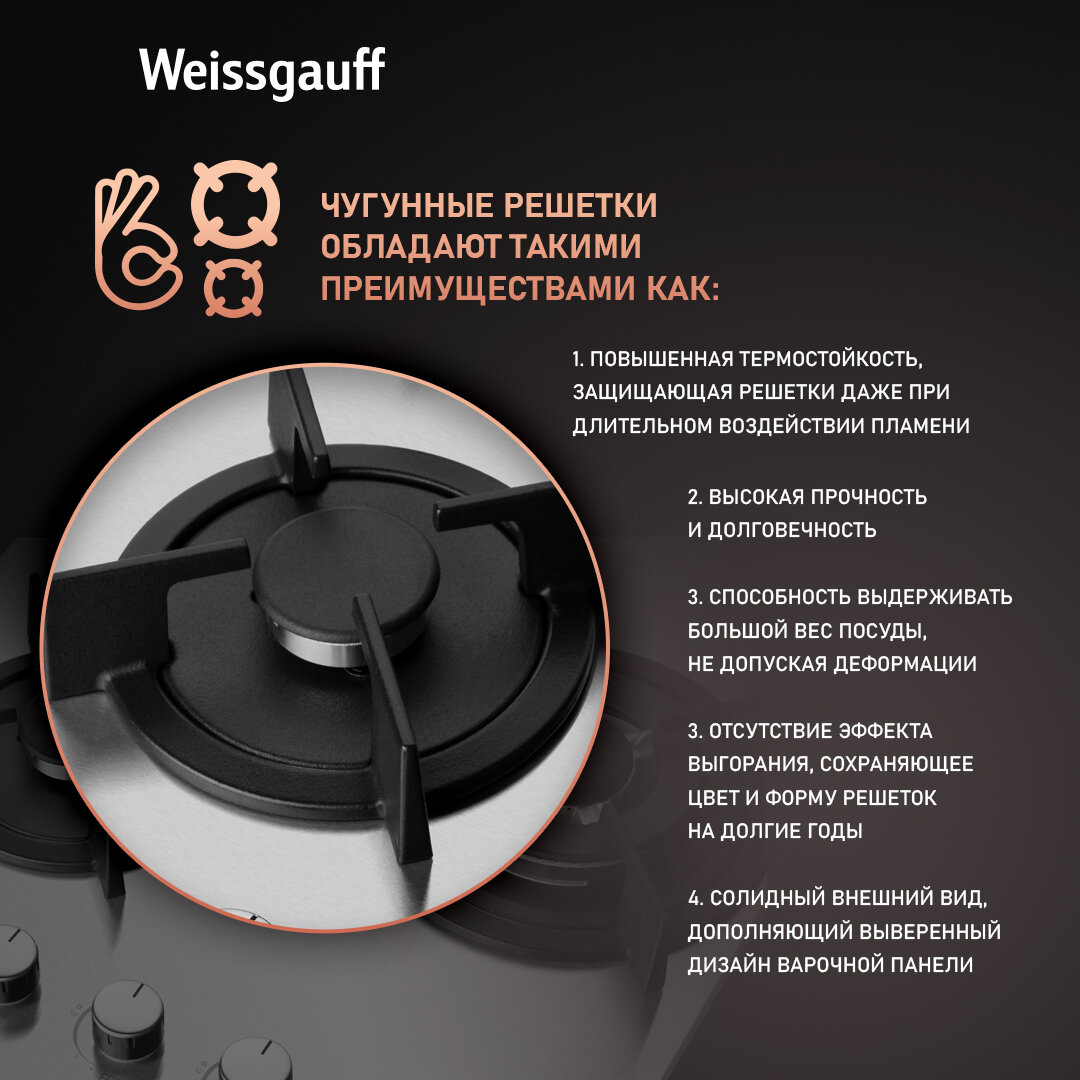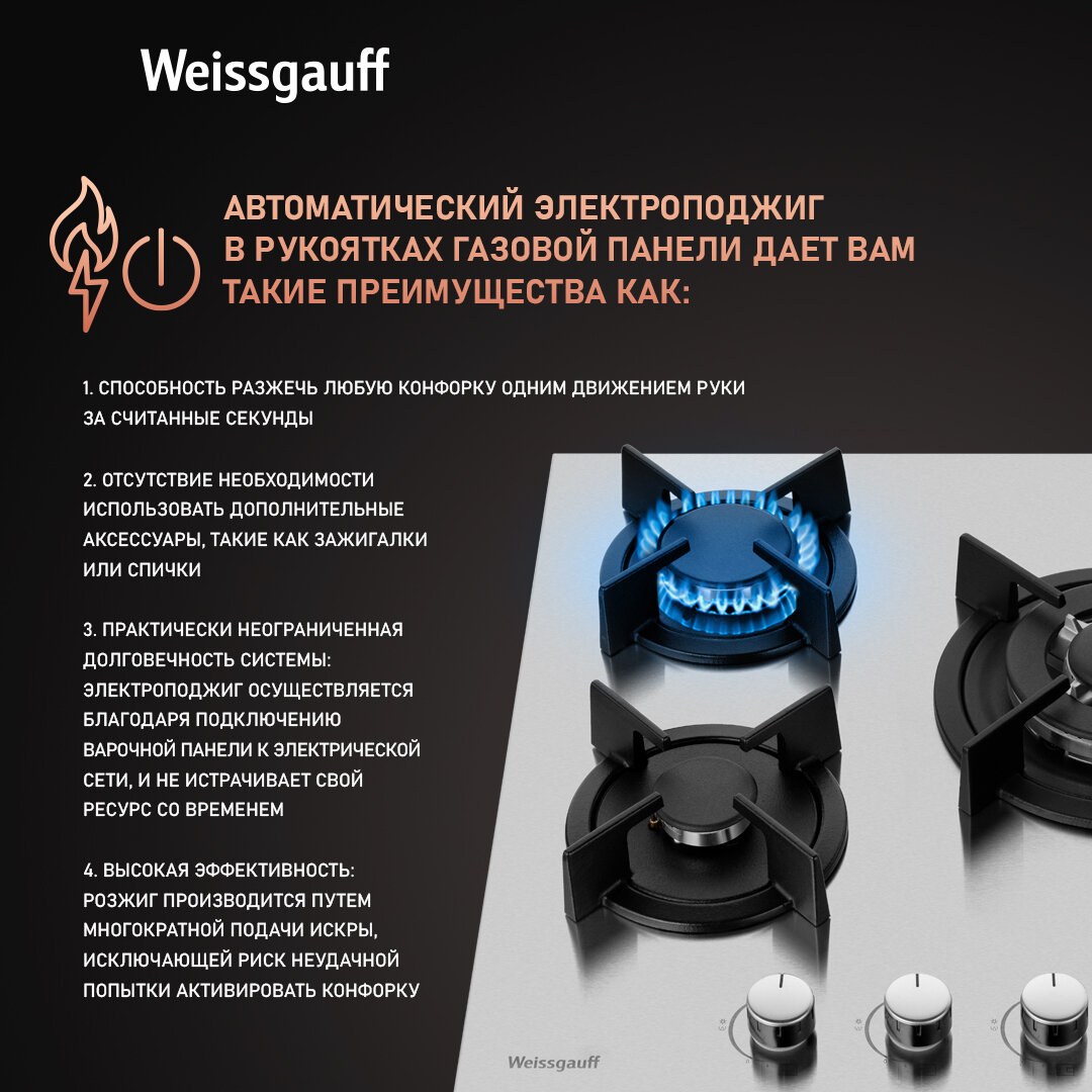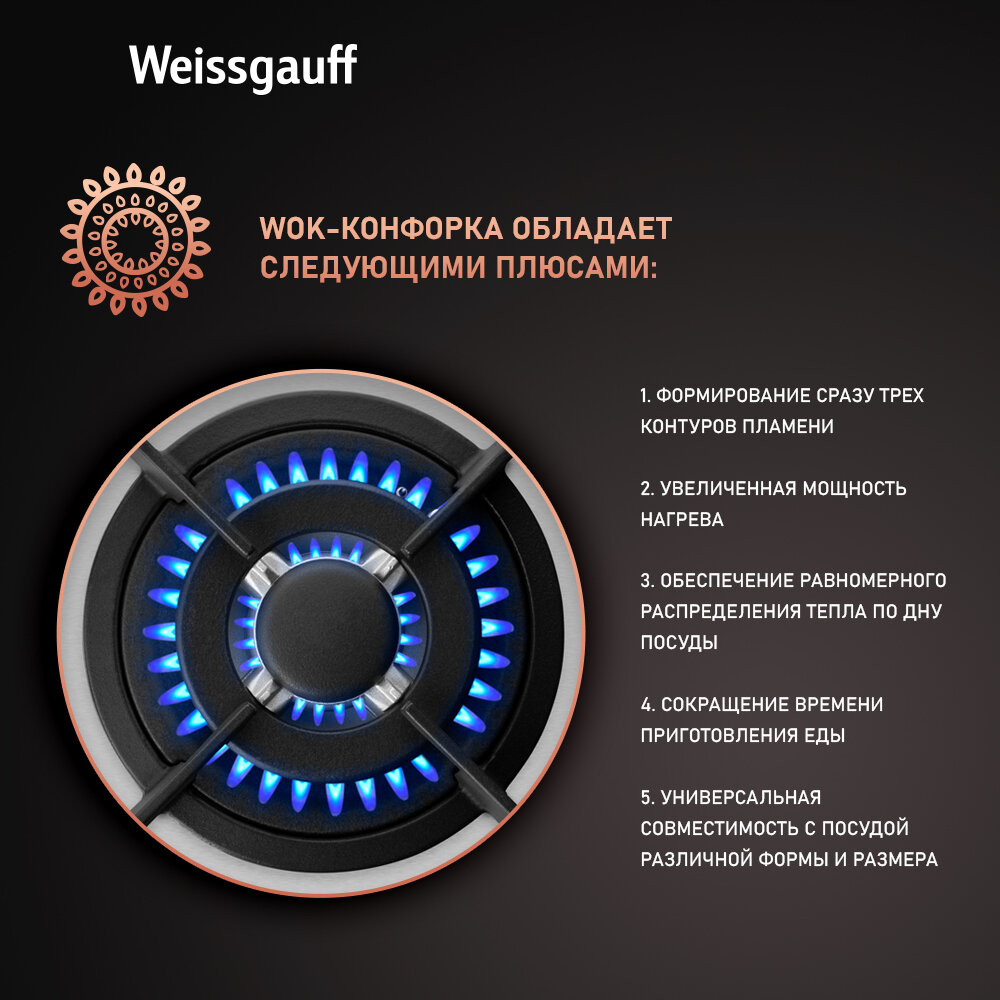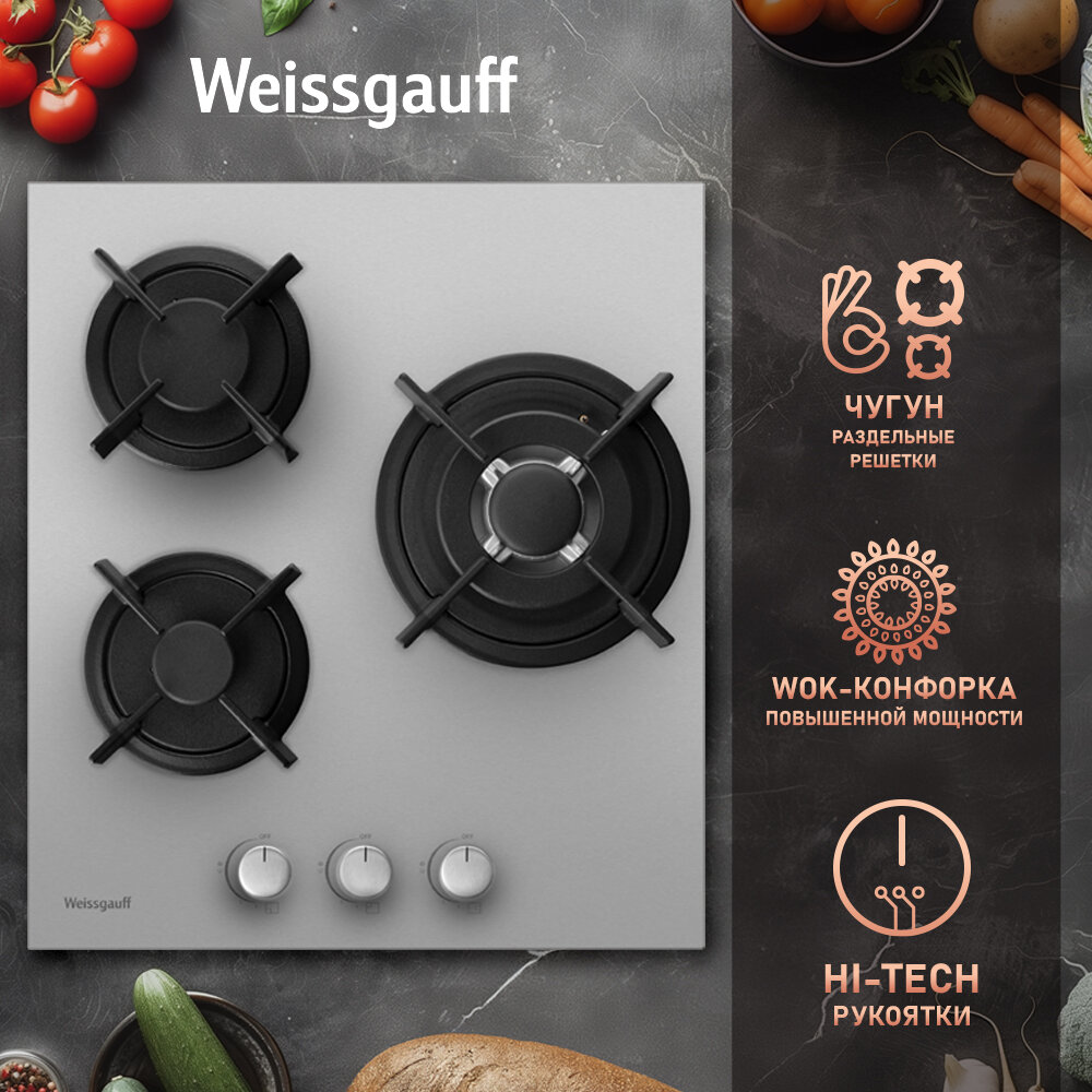 Варочная панель Weissgauff HGG 431 XR WOK-конфорка, 3 года гарантии, автоматический электроподжиг, Рукоятки Hi-Tech, газ-контроль интересное: