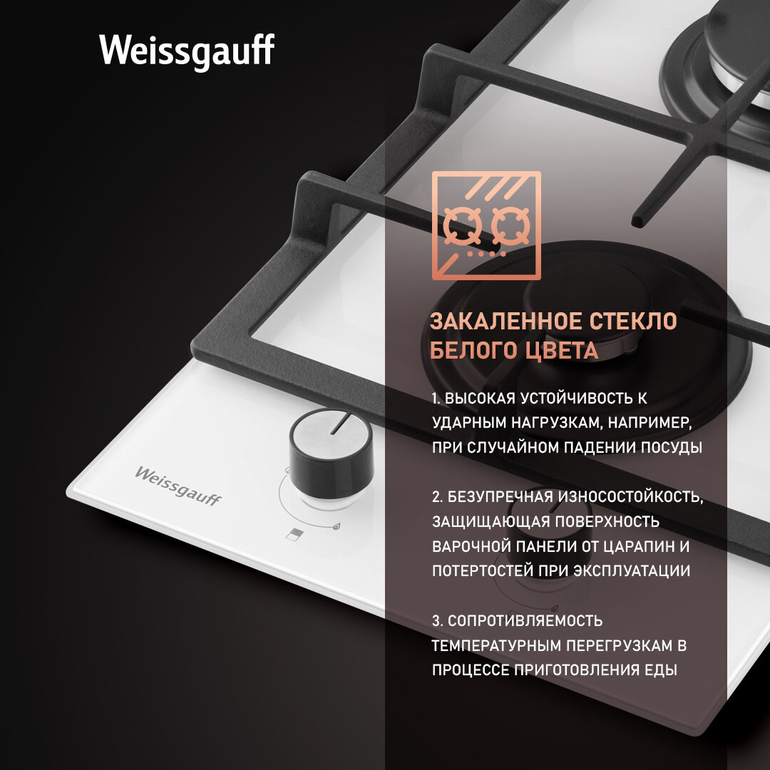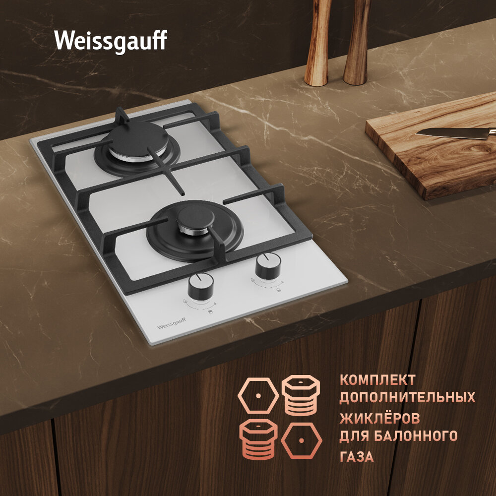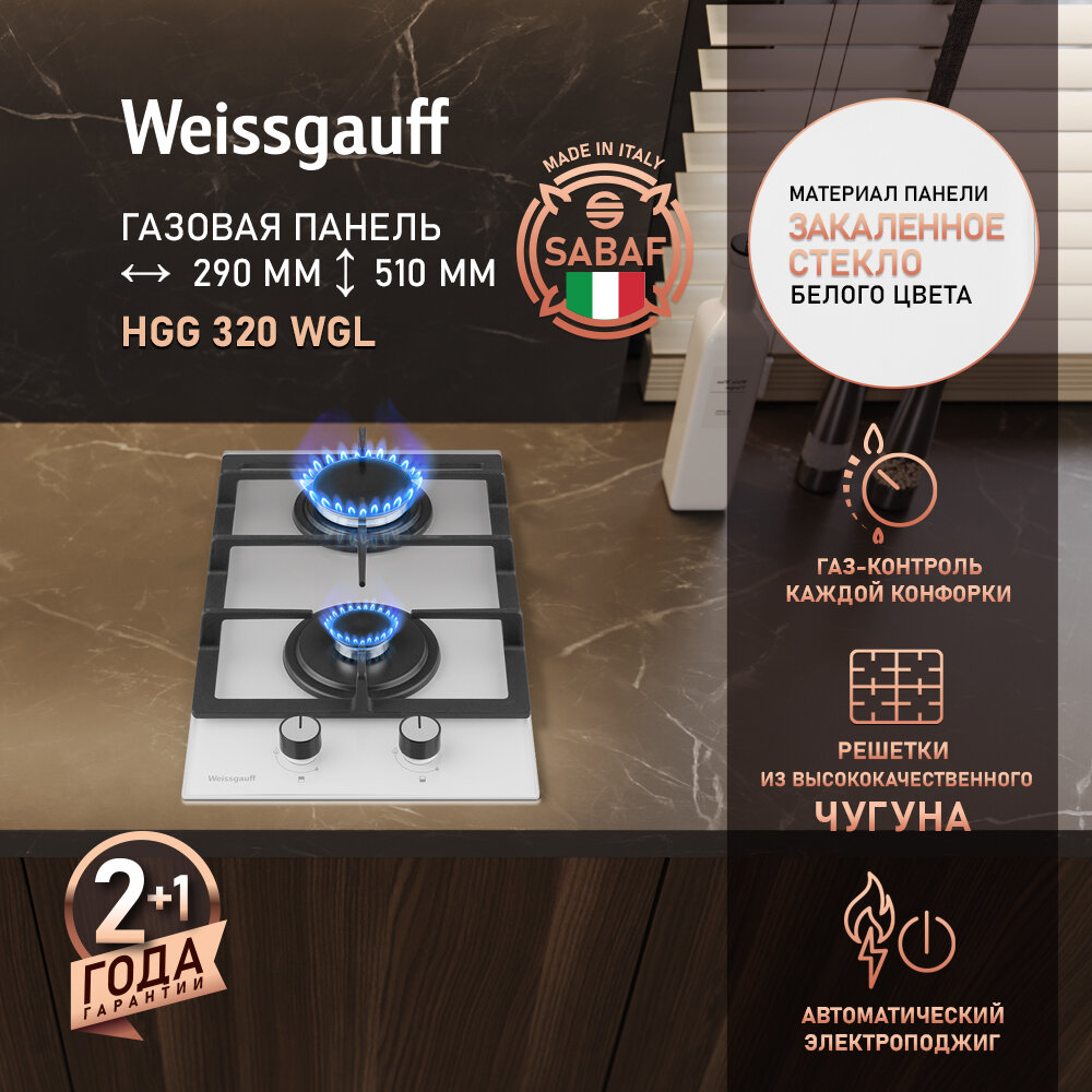 Купить Варочная панель Weissgauff HGG 320 WGL, ширина 29 см, газ контроль, автоматические электроподжиг, решетки из чугуна