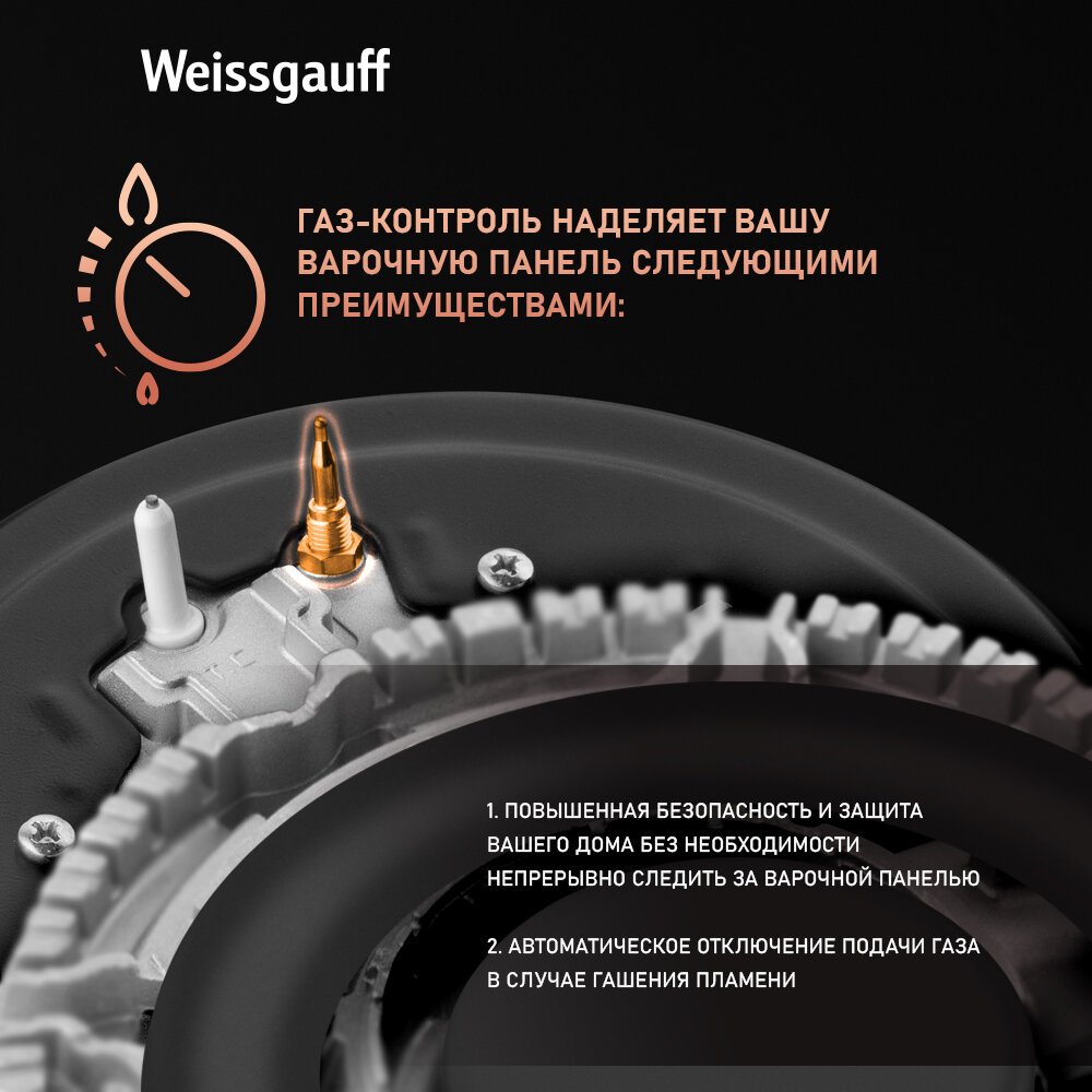 Варочная панель Weissgauff HGG 320 WGL, ширина 29 см, газ контроль, автоматические электроподжиг, решетки из чугуна интересное: