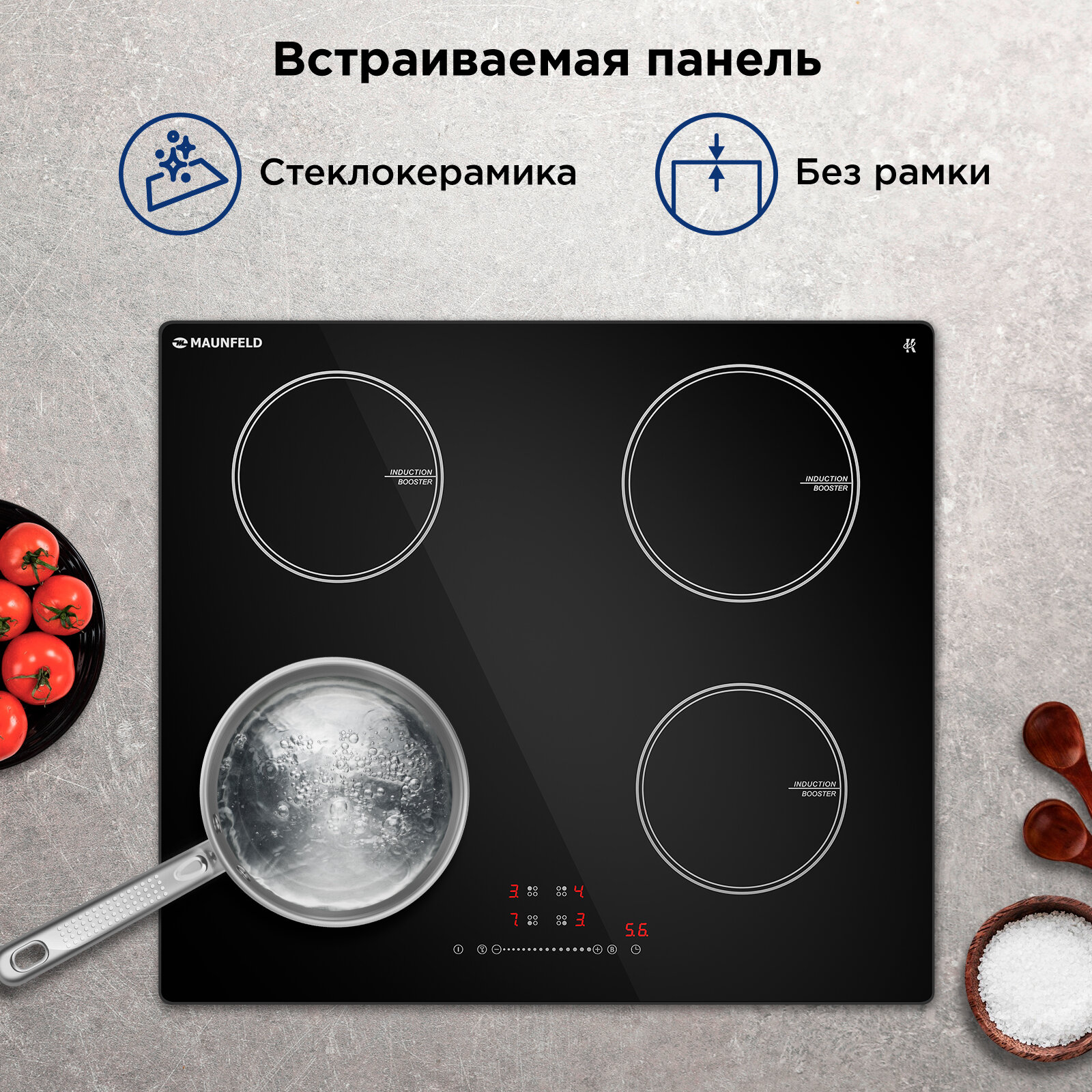 Индукционная варочная панель MAUNFELD CVI594STBK, 4 конфорки, мощность 6,4 кВт, бустер, таймер интересное: