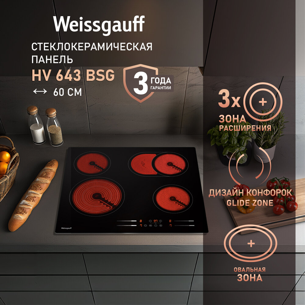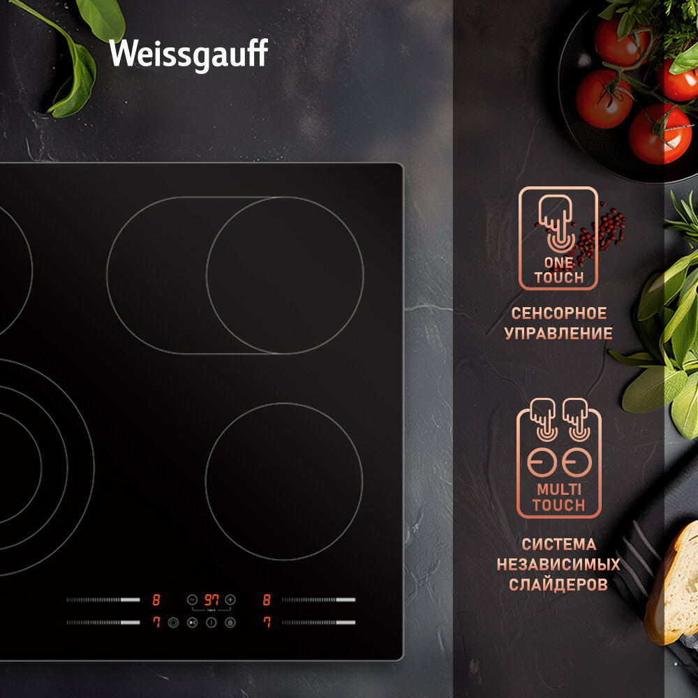 Стеклокерамическая панель Weissgauff HV 643 BSG, 4 конфорки, Овальная зона, Сенсорное управление, Мощность 6700 Вт интересное:
