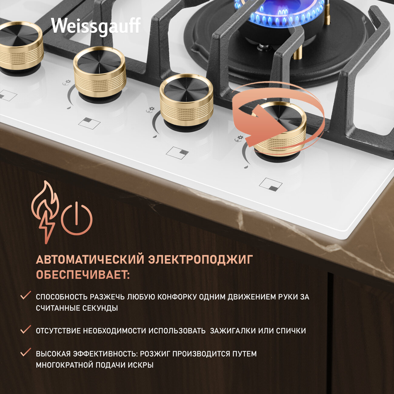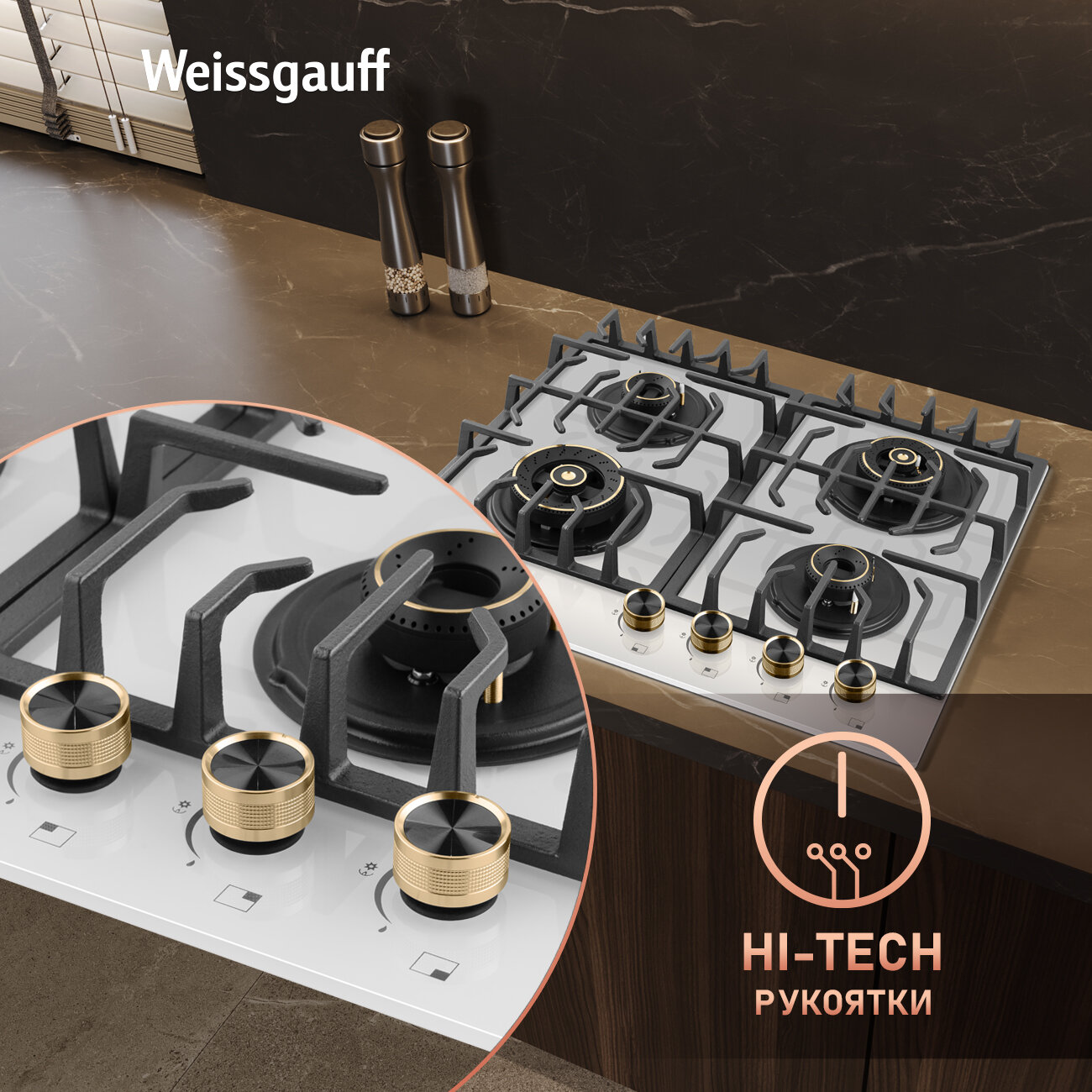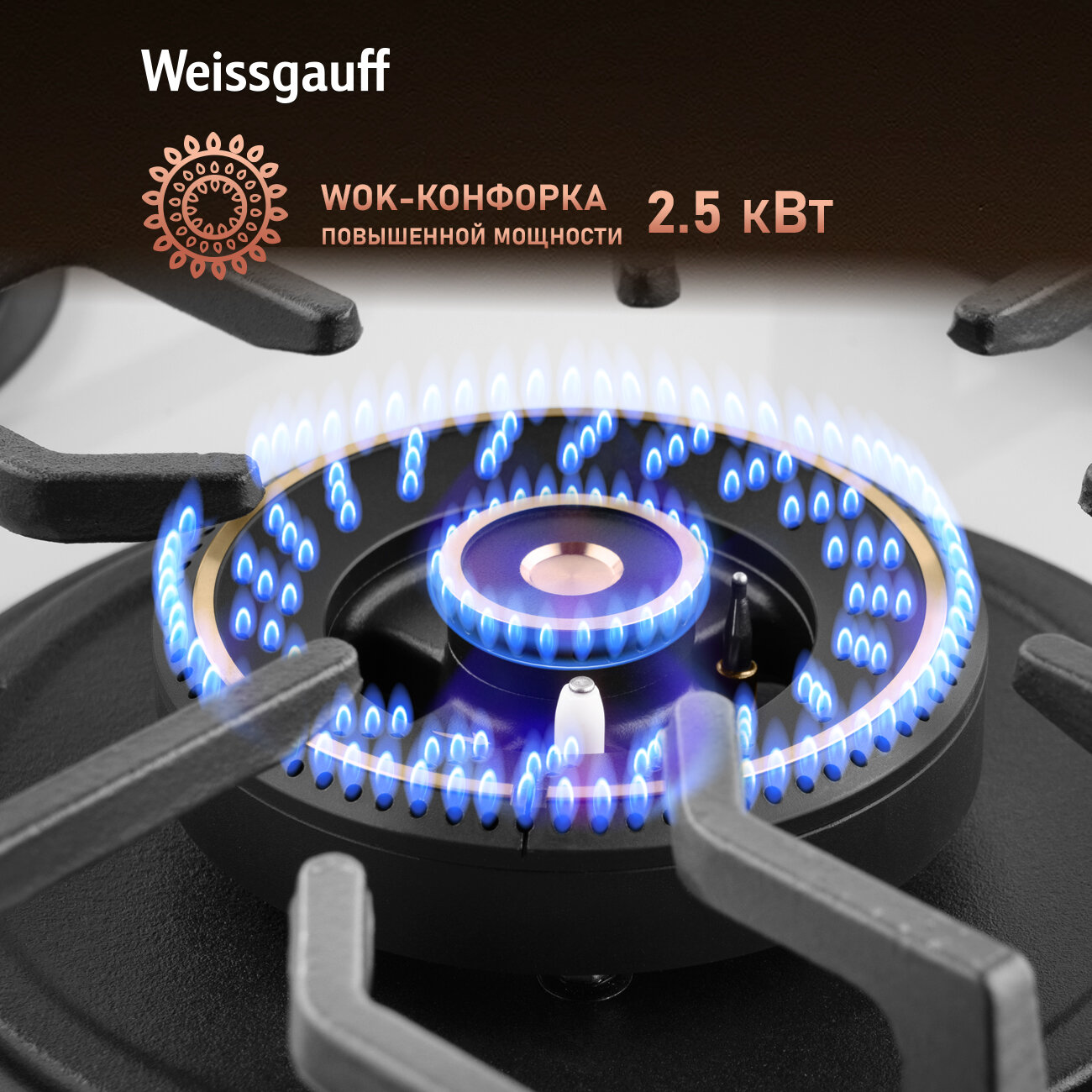 Варочная панель Weissgauff HGG 644 WG Premium Brass, Большая и малая WOK-конфорка интересное: