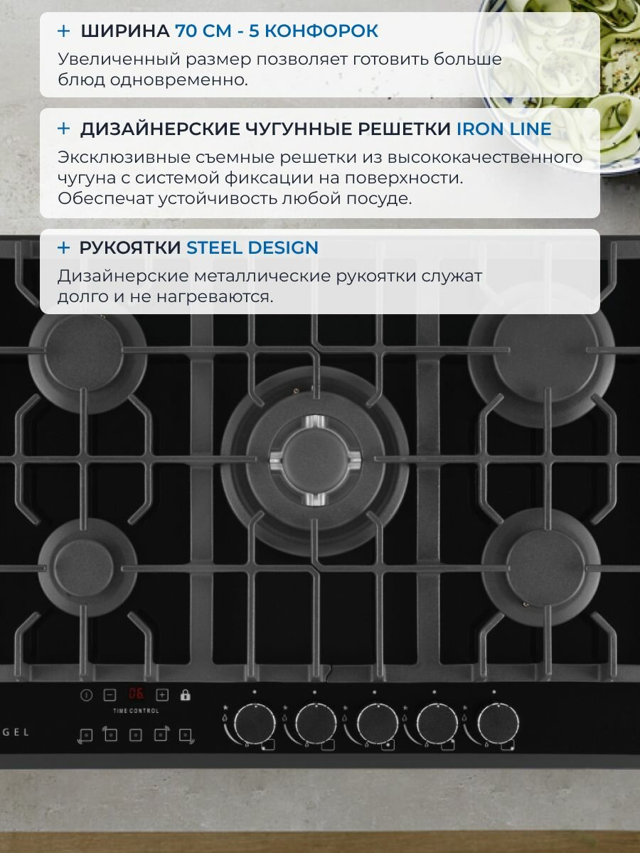 Варочная панель газовая ZUGEL ZGH600X, с таймером, чёрная