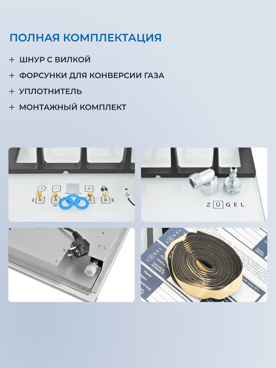Варочная панель газовая ZUGEL ZGH600W, с таймером, белая интересное: