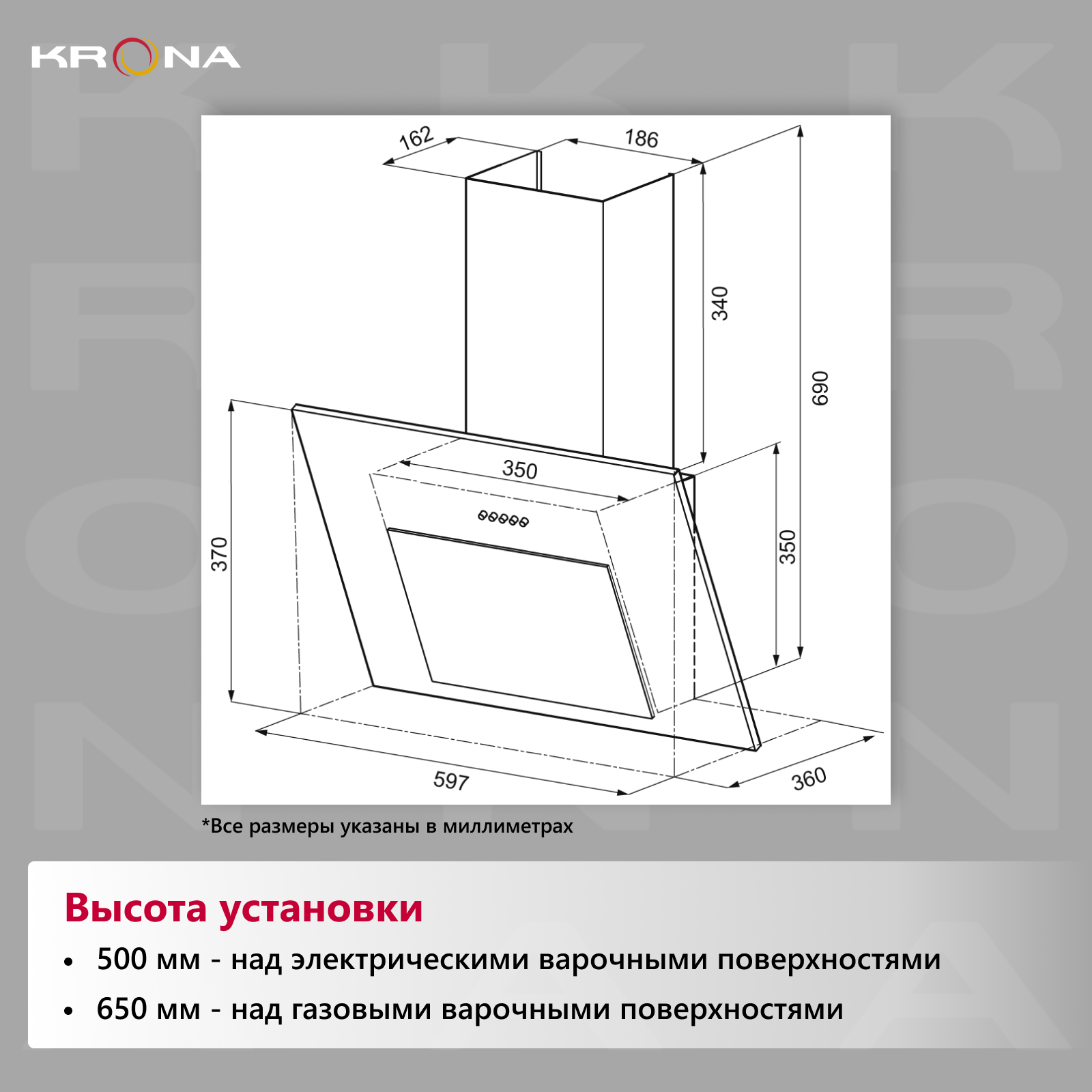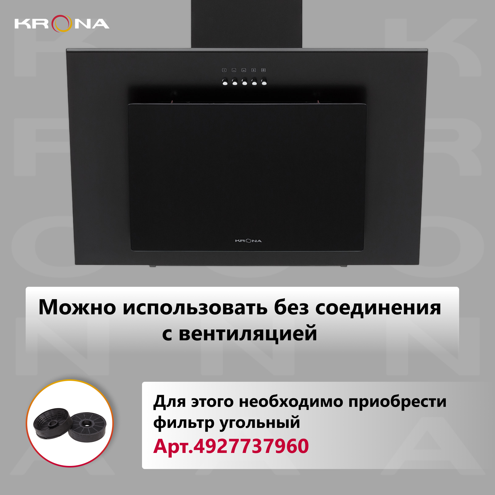 Вытяжка кухонная 60 см наклонная KRONA FIONA E 600 black PB интересное: