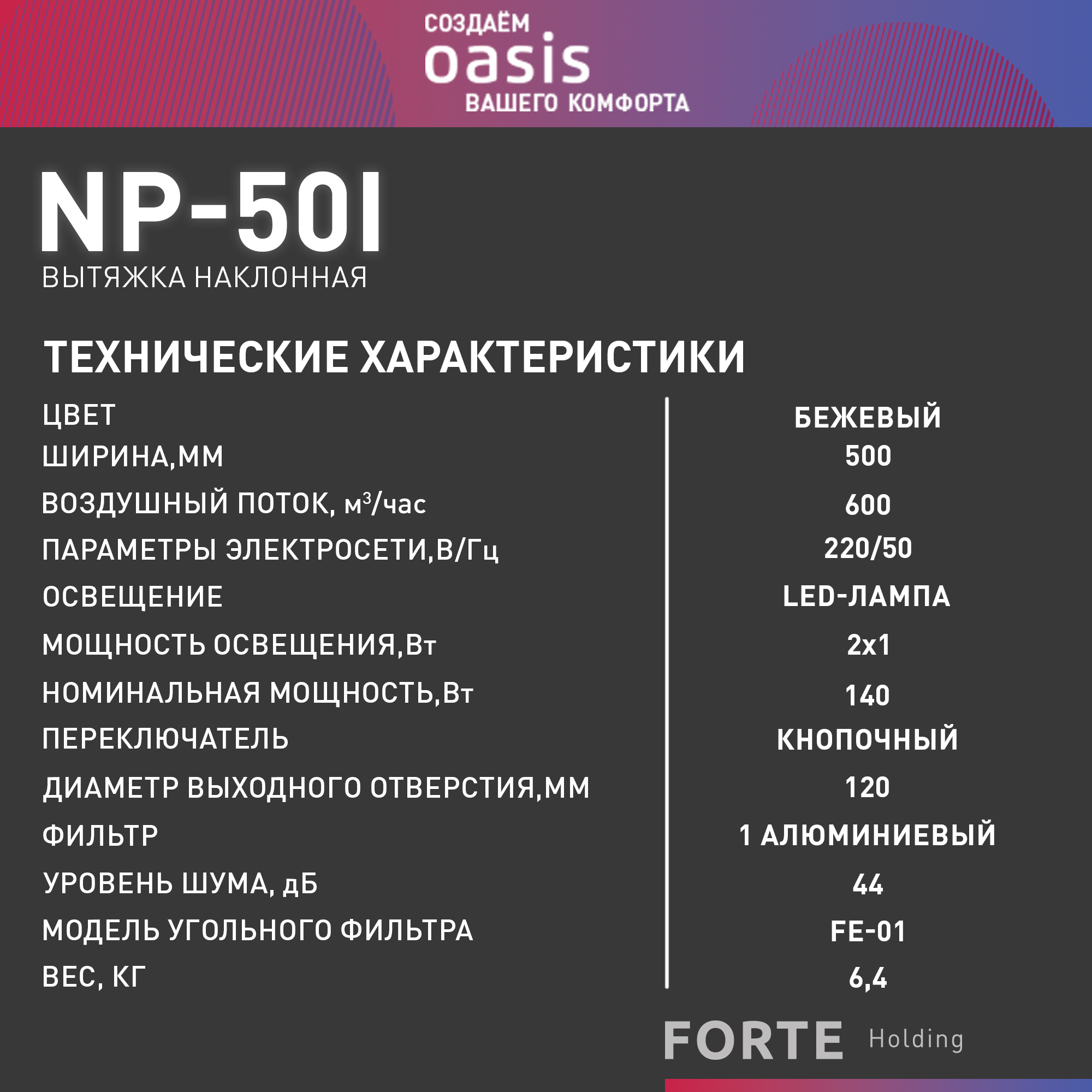 Вытяжка кухонная 50 см making Oasis everywhere NP-50I / для кухни наклонная интересное:
