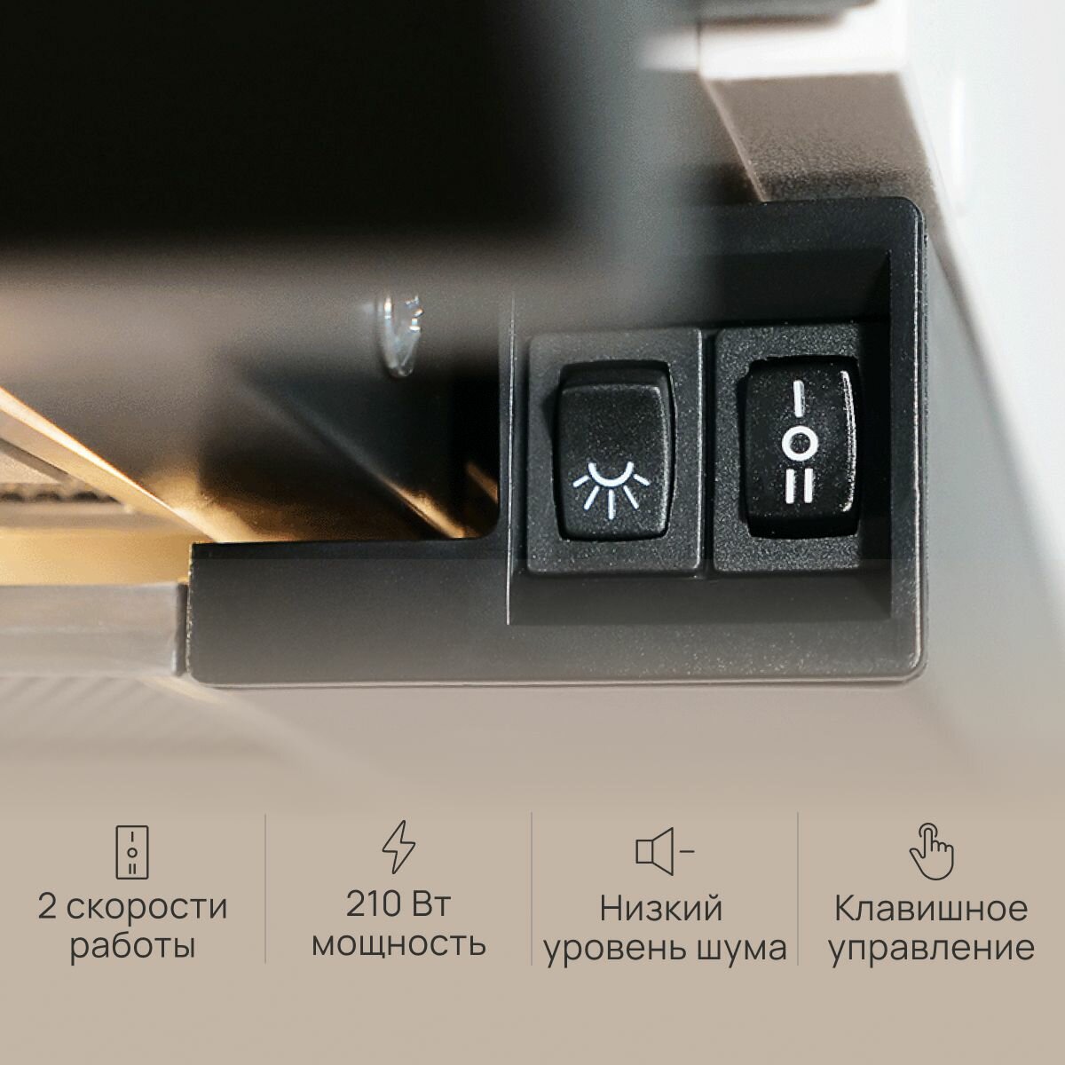 Вытяжка кухонная 50 см встраиваемая, 290 м3/ч, цвет коричневый, ELIKOR Davoline 50П-290-П3Л, 3 скорости, лампа накаливания, управление ползунковое