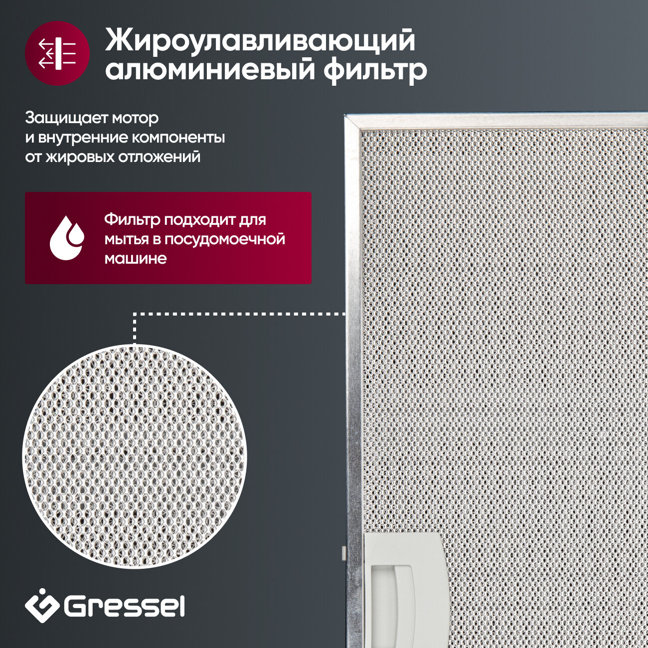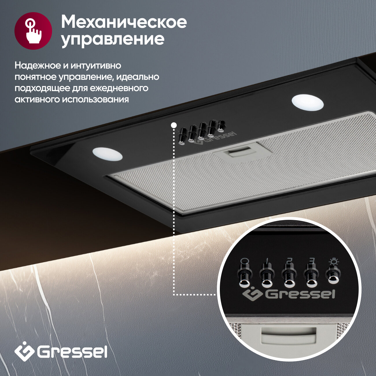 Встраиваемая вытяжка Gressel GR52B2 52 см (полновстраиваемая), LED подсветка, 3 скорости интересное: