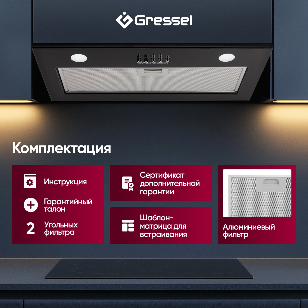 Купить Встраиваемая вытяжка Gressel GR52B2 52 см (полновстраиваемая), LED подсветка, 3 скорости