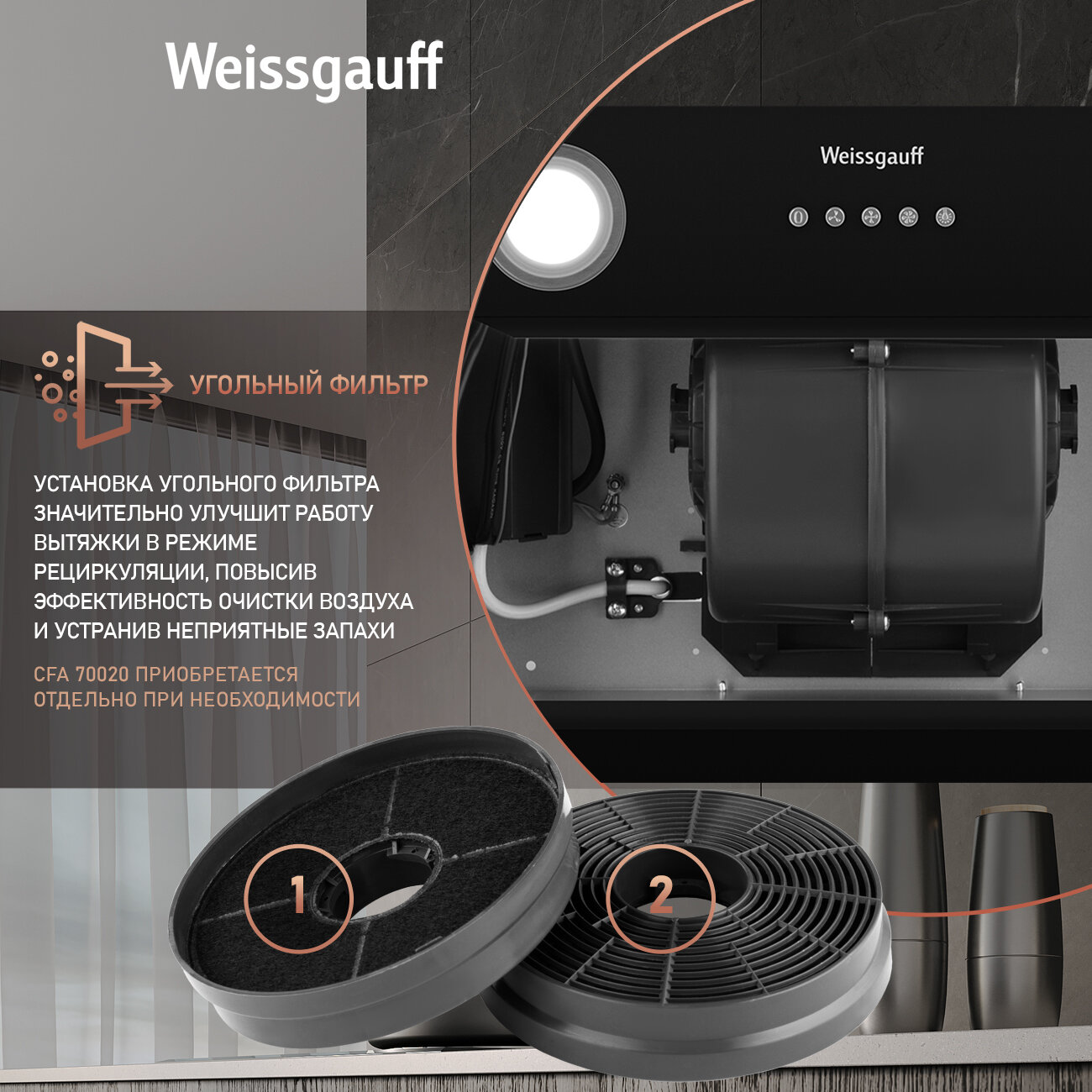 Кухонная встраиваемая вытяжка Weissgauff Box 600 PB BL, производительность 900 м3/ч интересное: