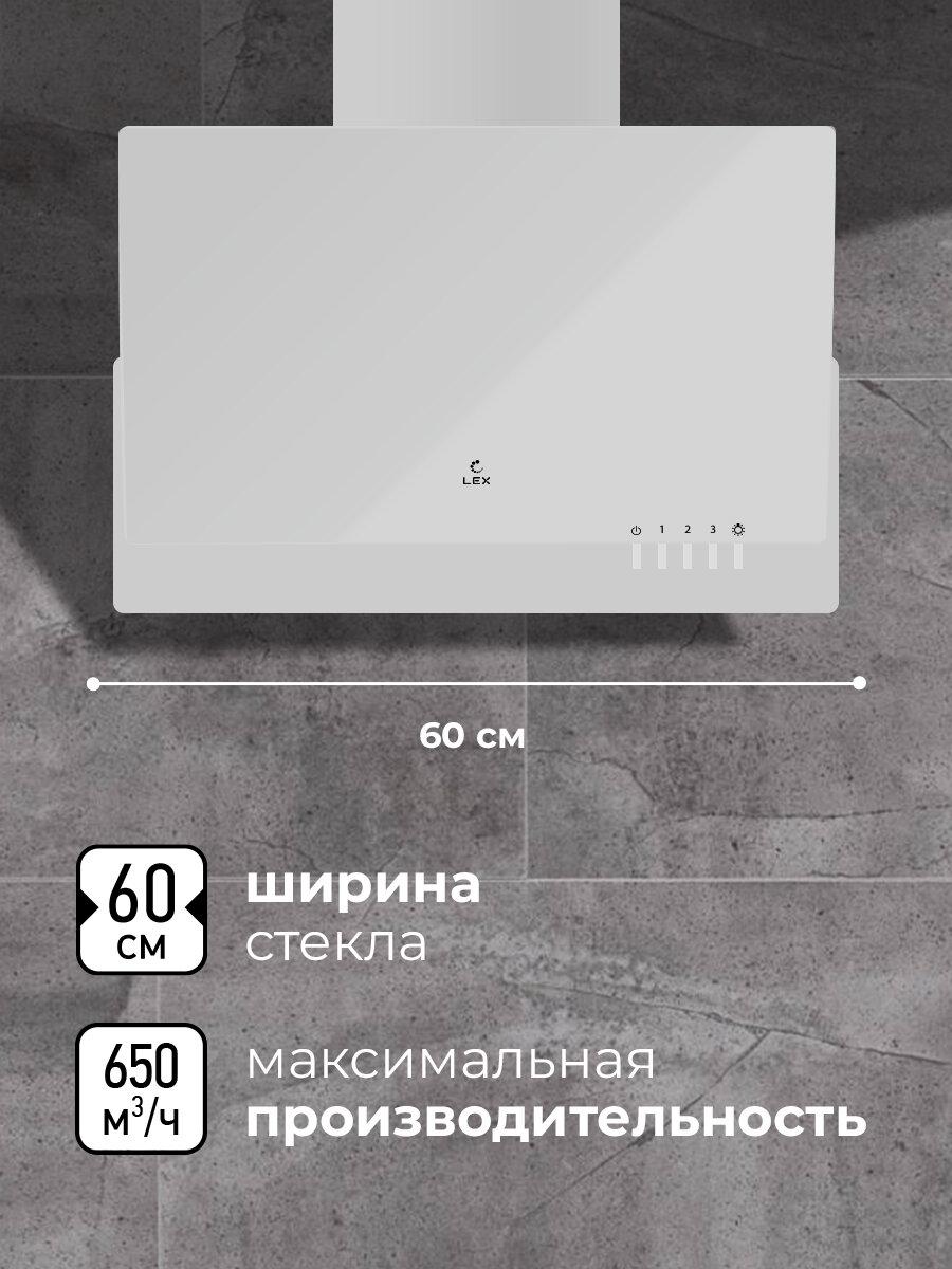 Наклонная кухонная вытяжка LEX MERA 600 WHITE, 60см, отделка: стекло, кнопочное управление, LED лампы, белый. интересное: