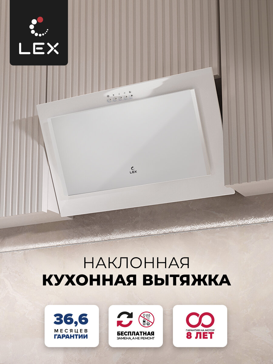 Наклонная кухонная вытяжка LEX MIO G 600 WHITE, 60 см, отделка: стекло, кнопочное управление, LED лампы, белый. интересное: