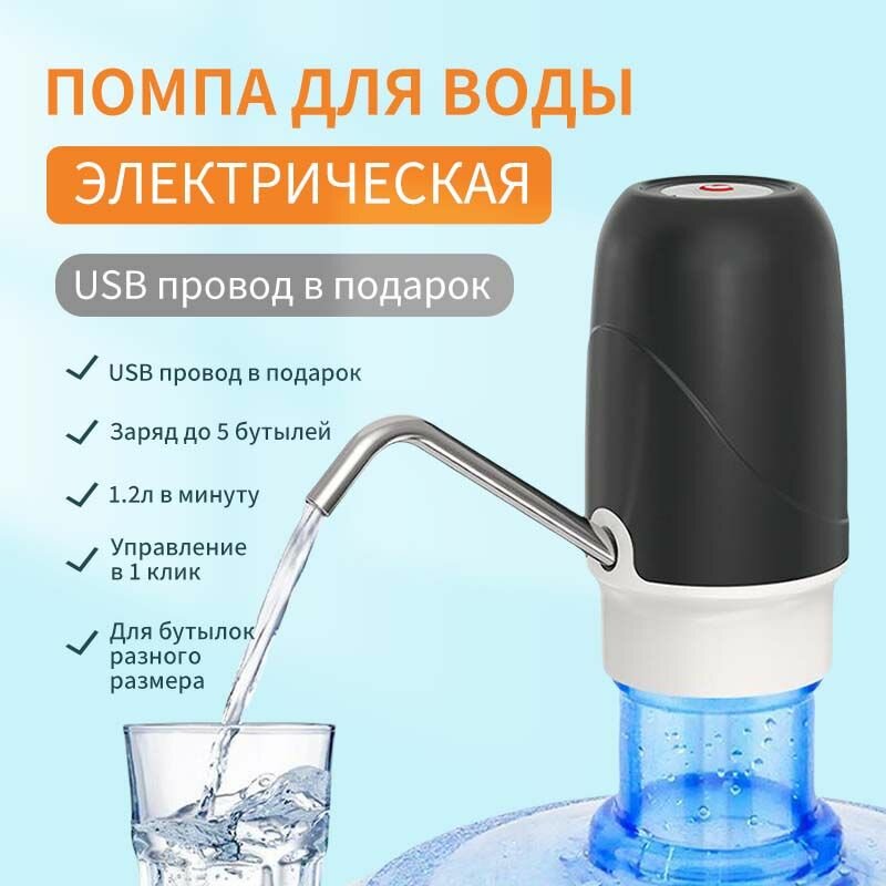 Помпа для воды PABK, на 19-литровую бутылку, с шлангом, черная интересное: