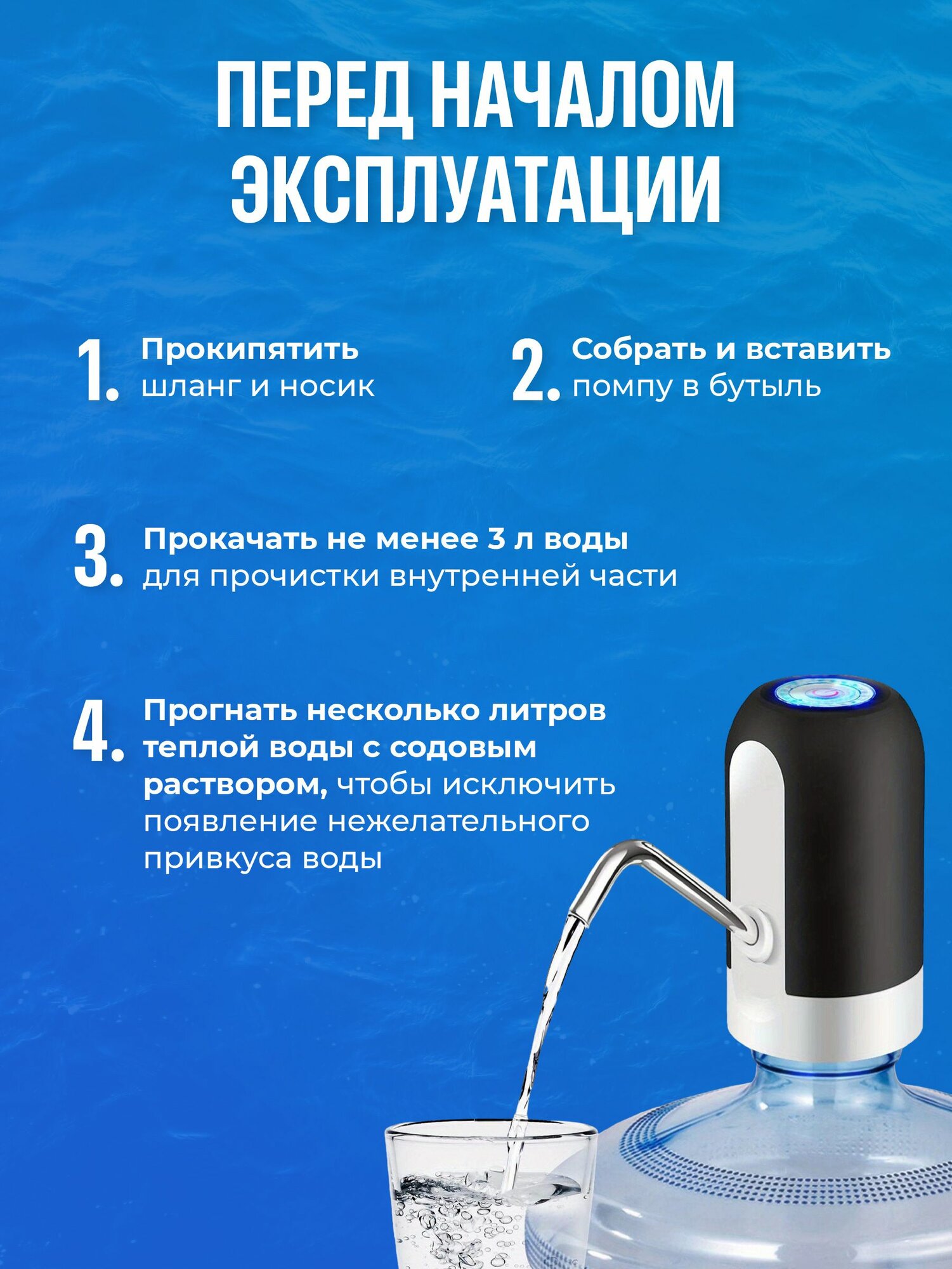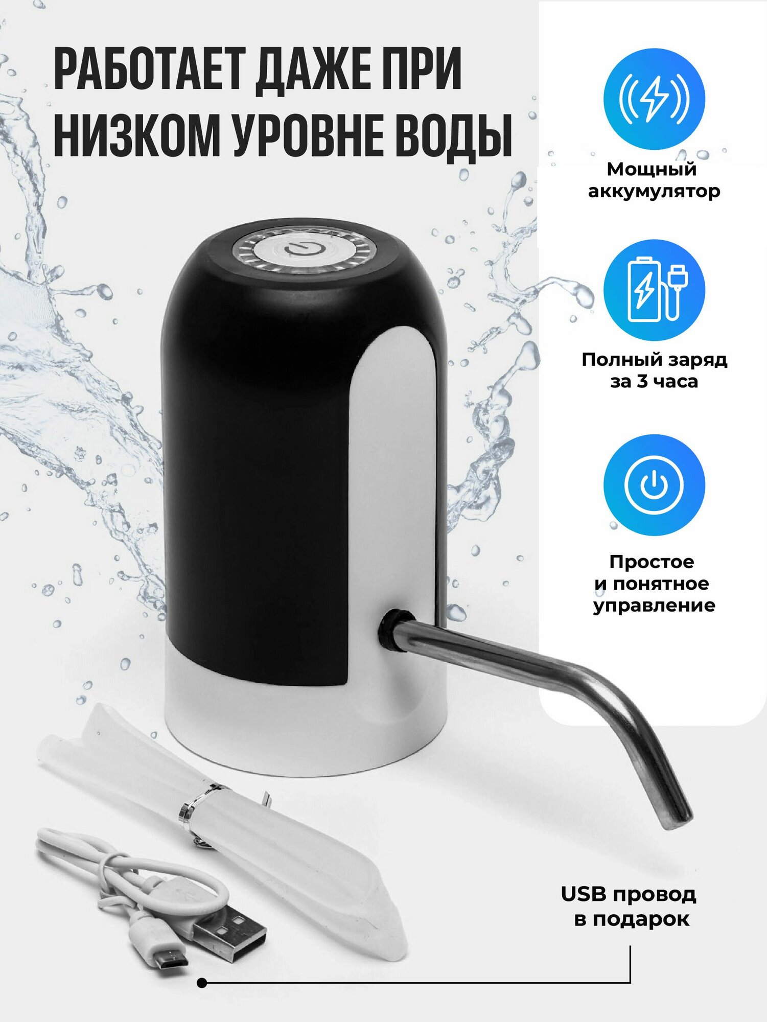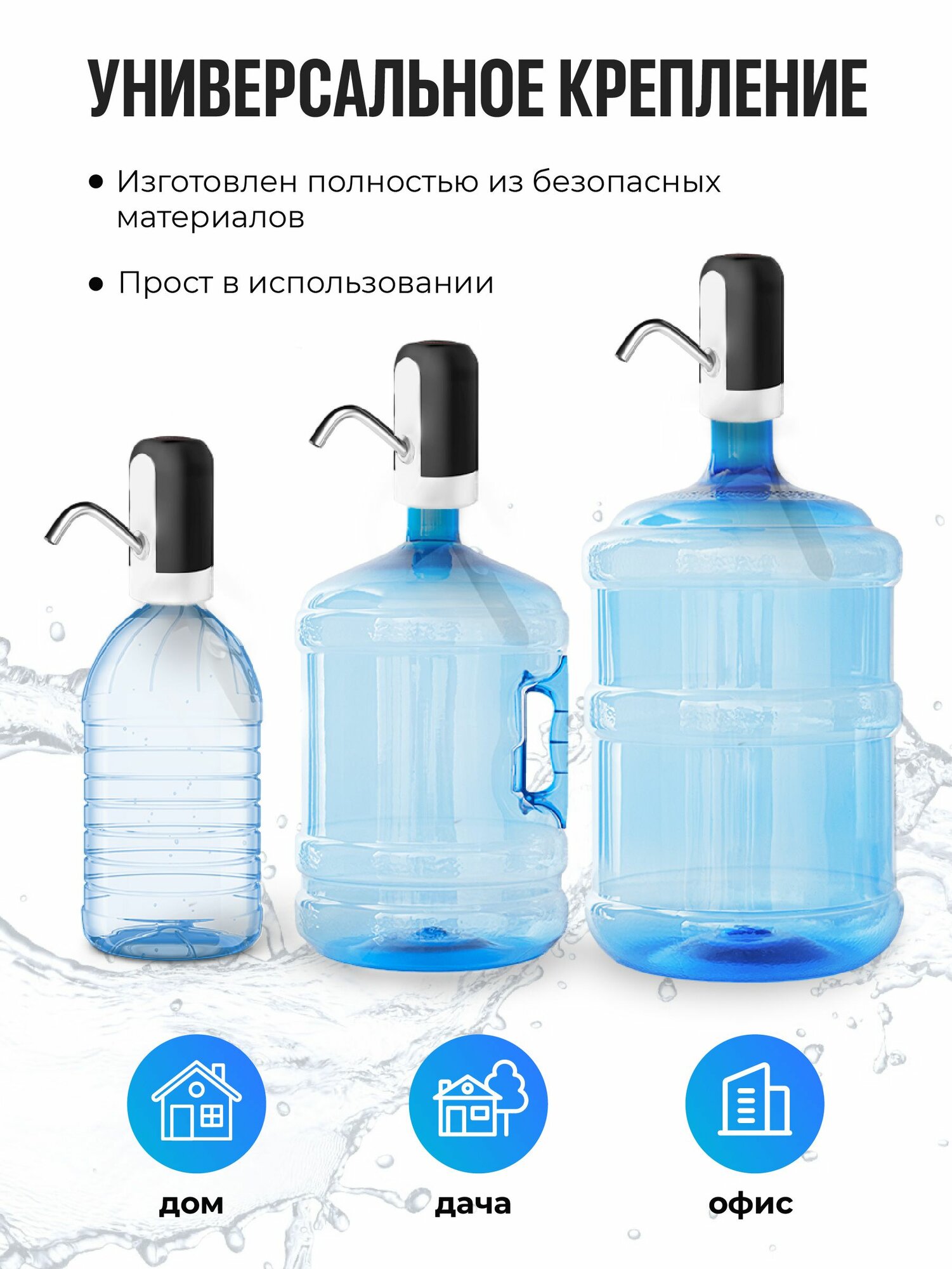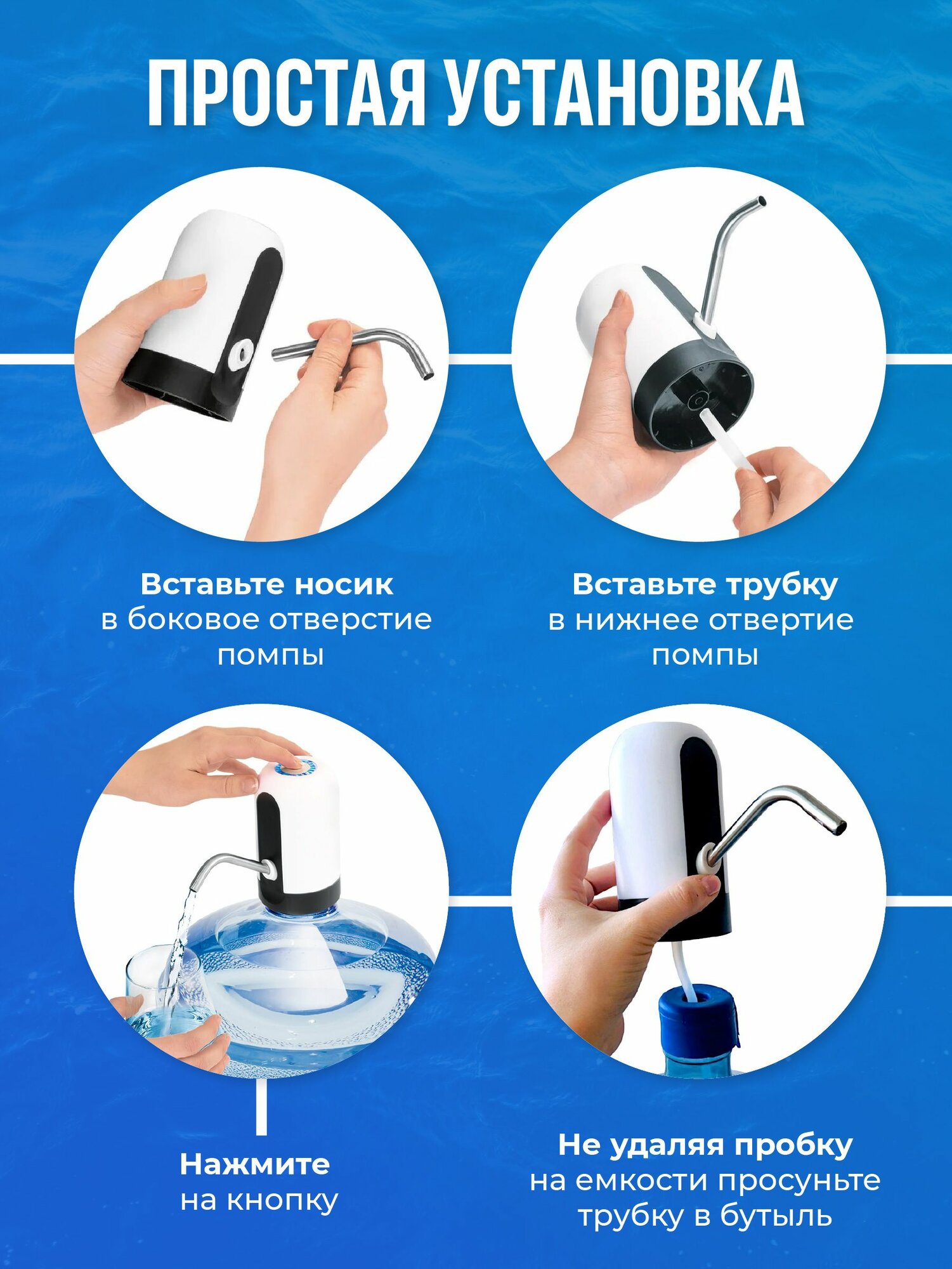 Электрическая помпа для воды , установка на бутылку, белая BM
