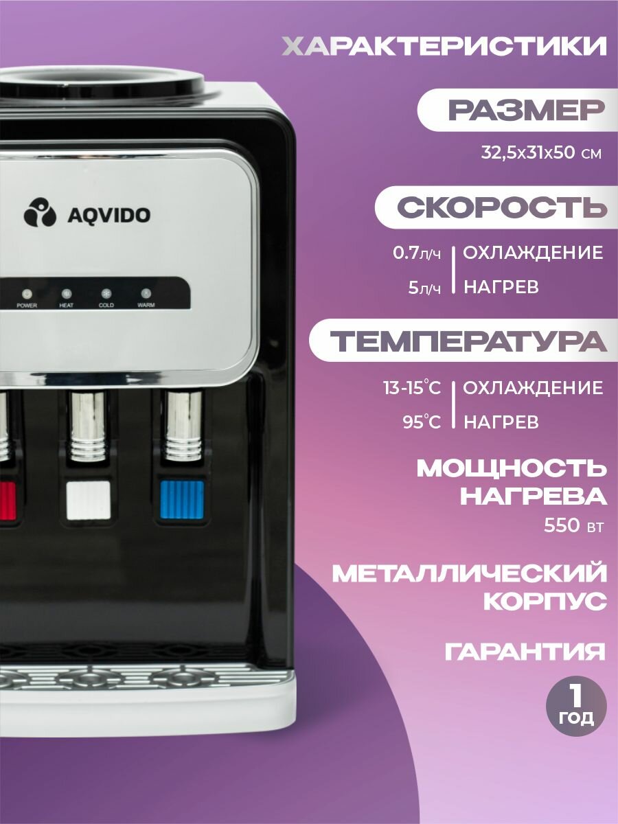 Кулер для воды с нагревом и электронным охлаждением настольный AQVIDO BSY-802TB серебристо-черный интересное: