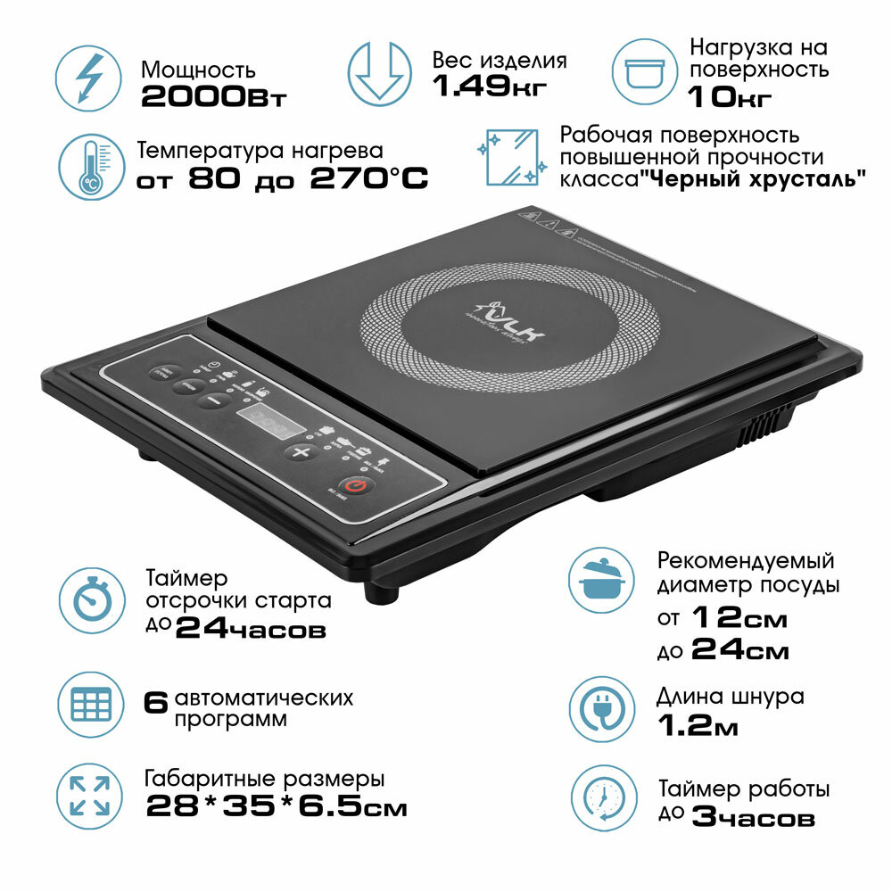 Индукционная плитка настольная VLK Palermo-7731 / 2000 Вт / 6 автоматических программ интересное: