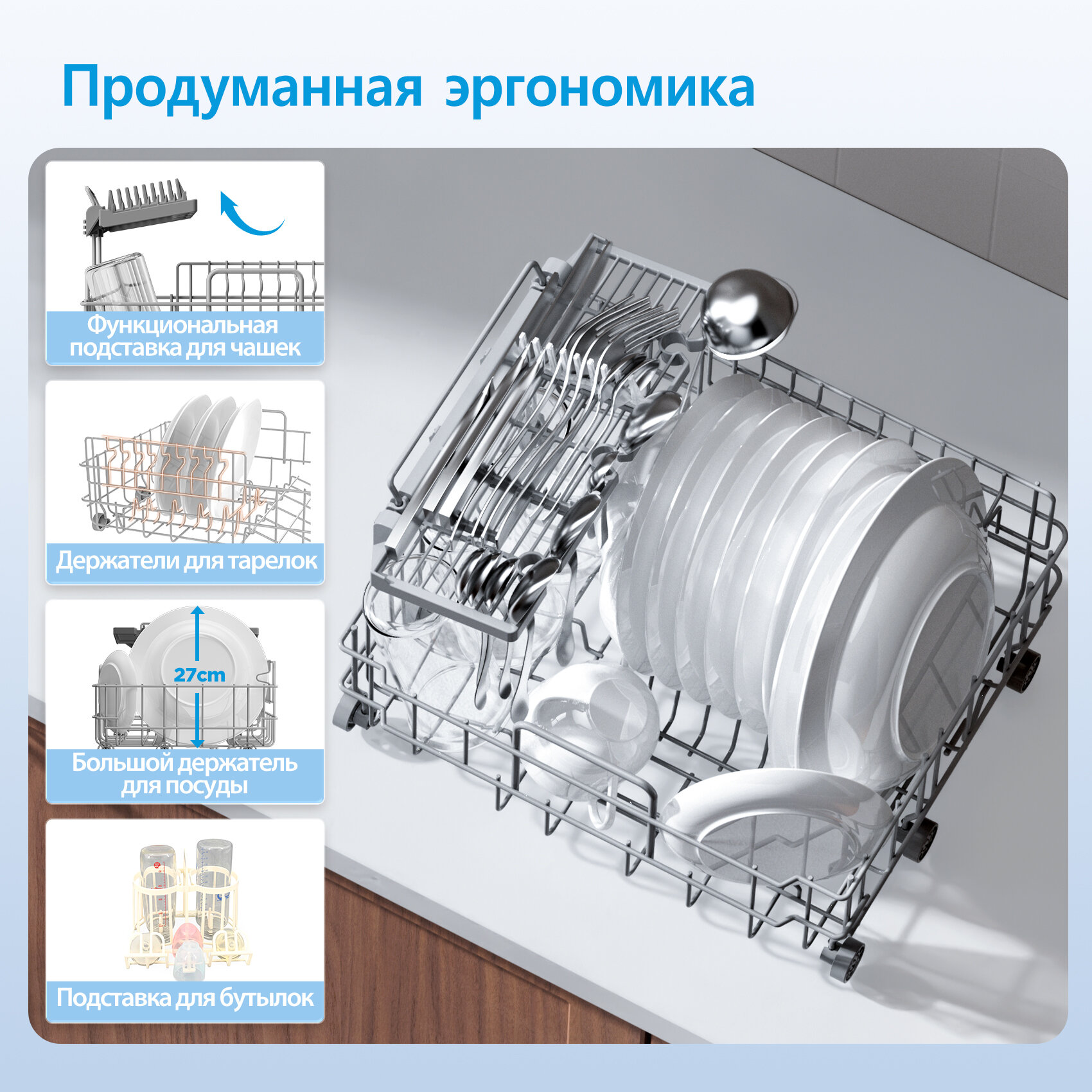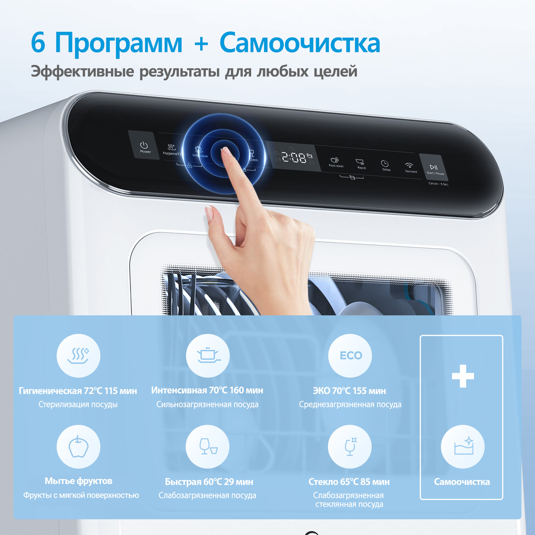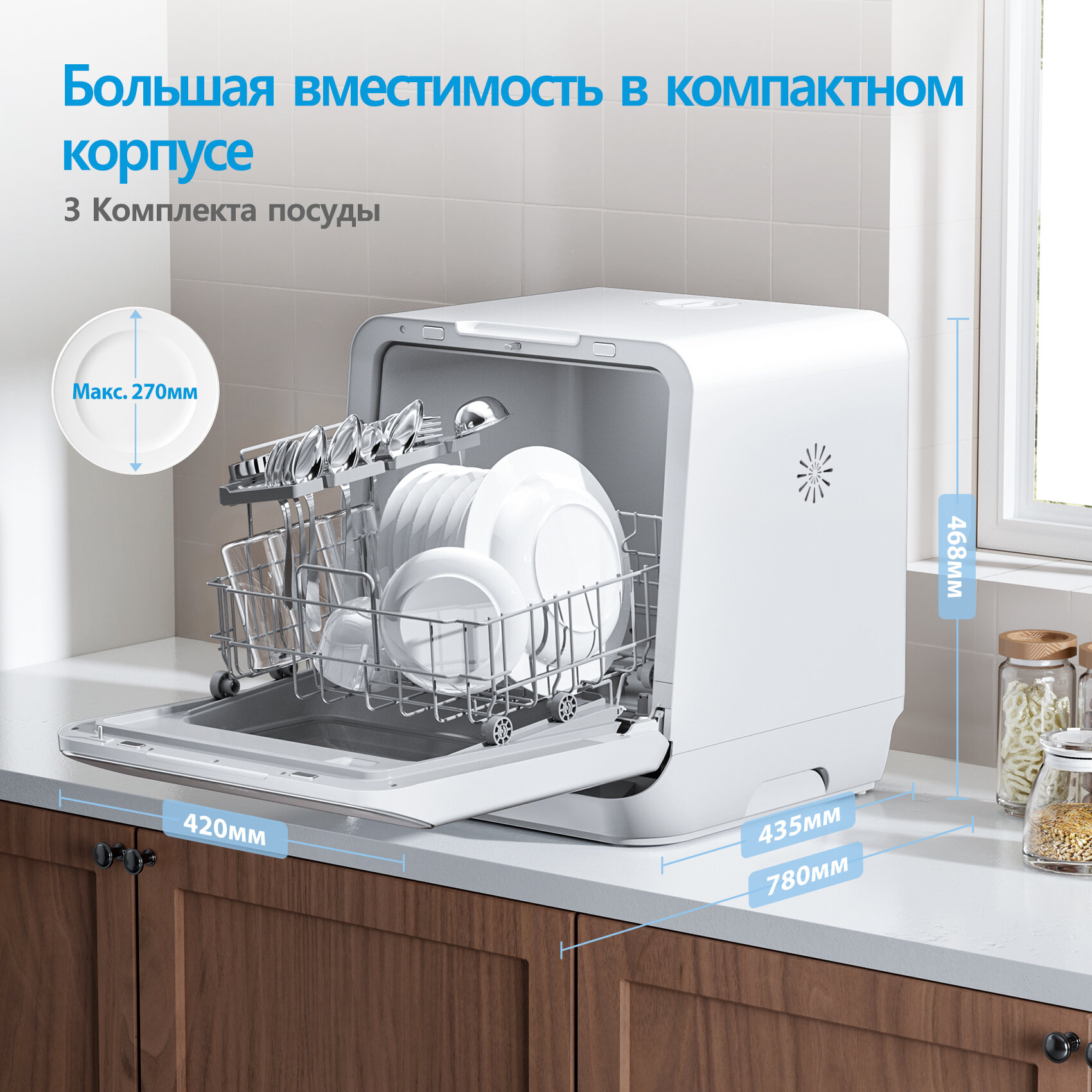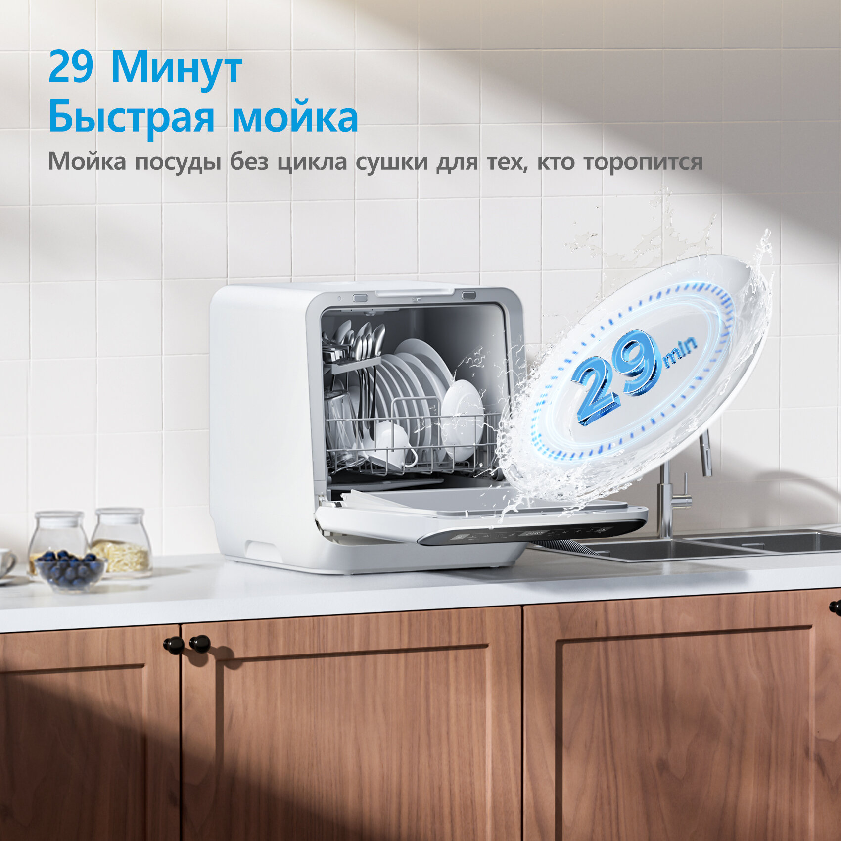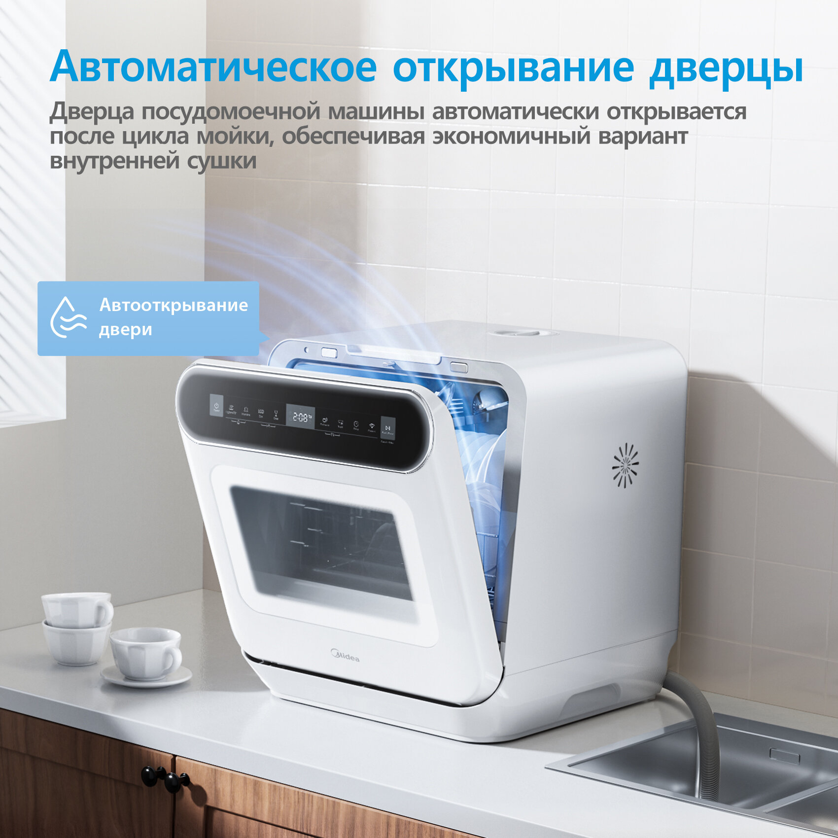 Компактная посудомоечная машина Midea MCFD42910WMINI-I, Wi-Fi управление, 6 программ, автооткрывание двери, самоочистка, с/без подключения к воде интересное: