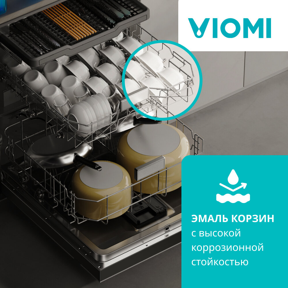 Встраиваемая посудомоечная машина Viomi VBDW161 60 см, 3 корзины, 16 компл, 14 программ, быстрая мойка 30 мин, черный интересное: