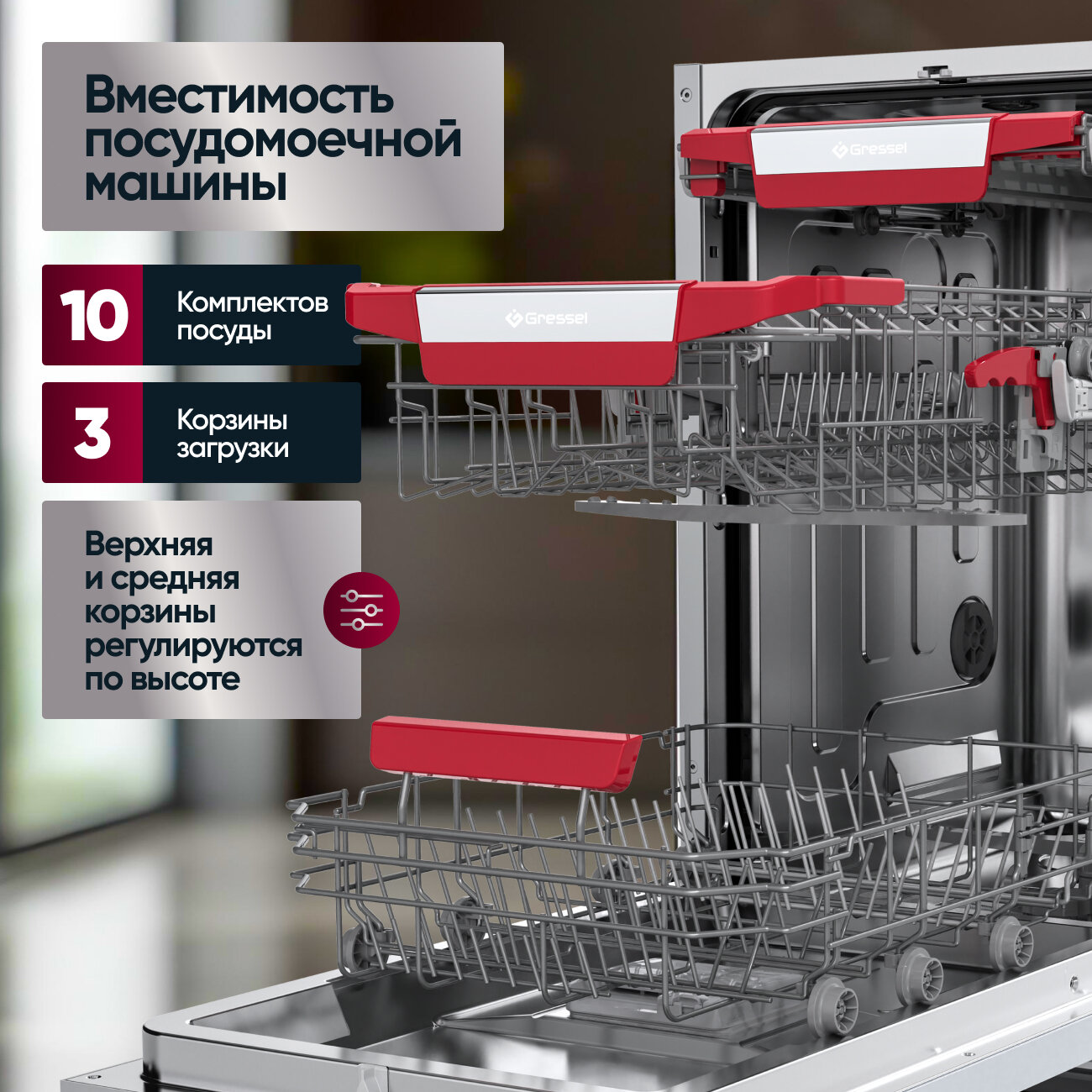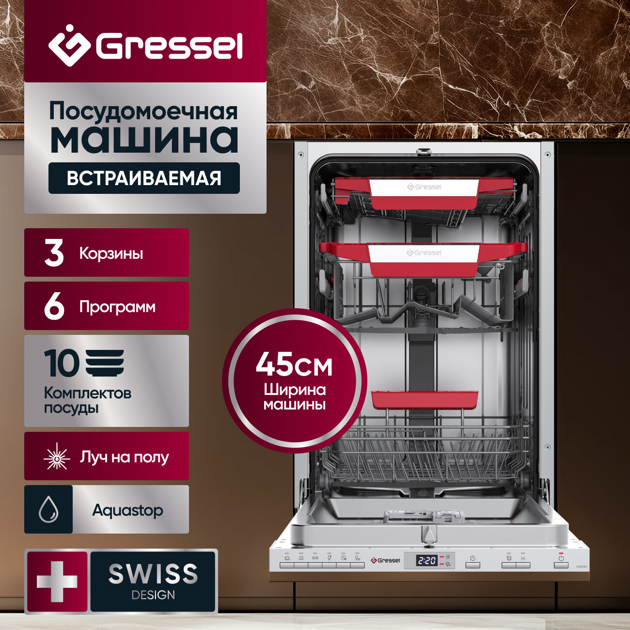 Посудомоечная машина Gressel UBM501 45 см. встраиваемая 10 комплектов 6 программ 3 корзины интересное:
