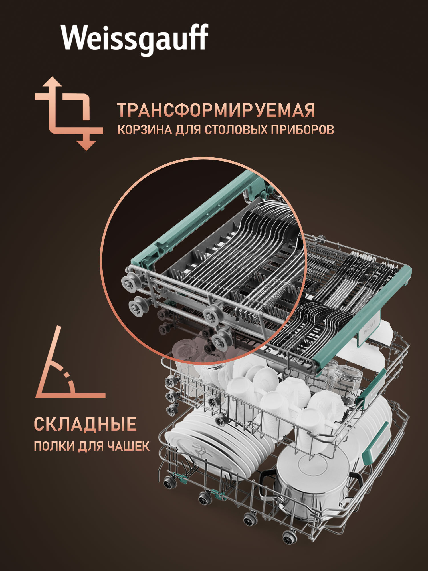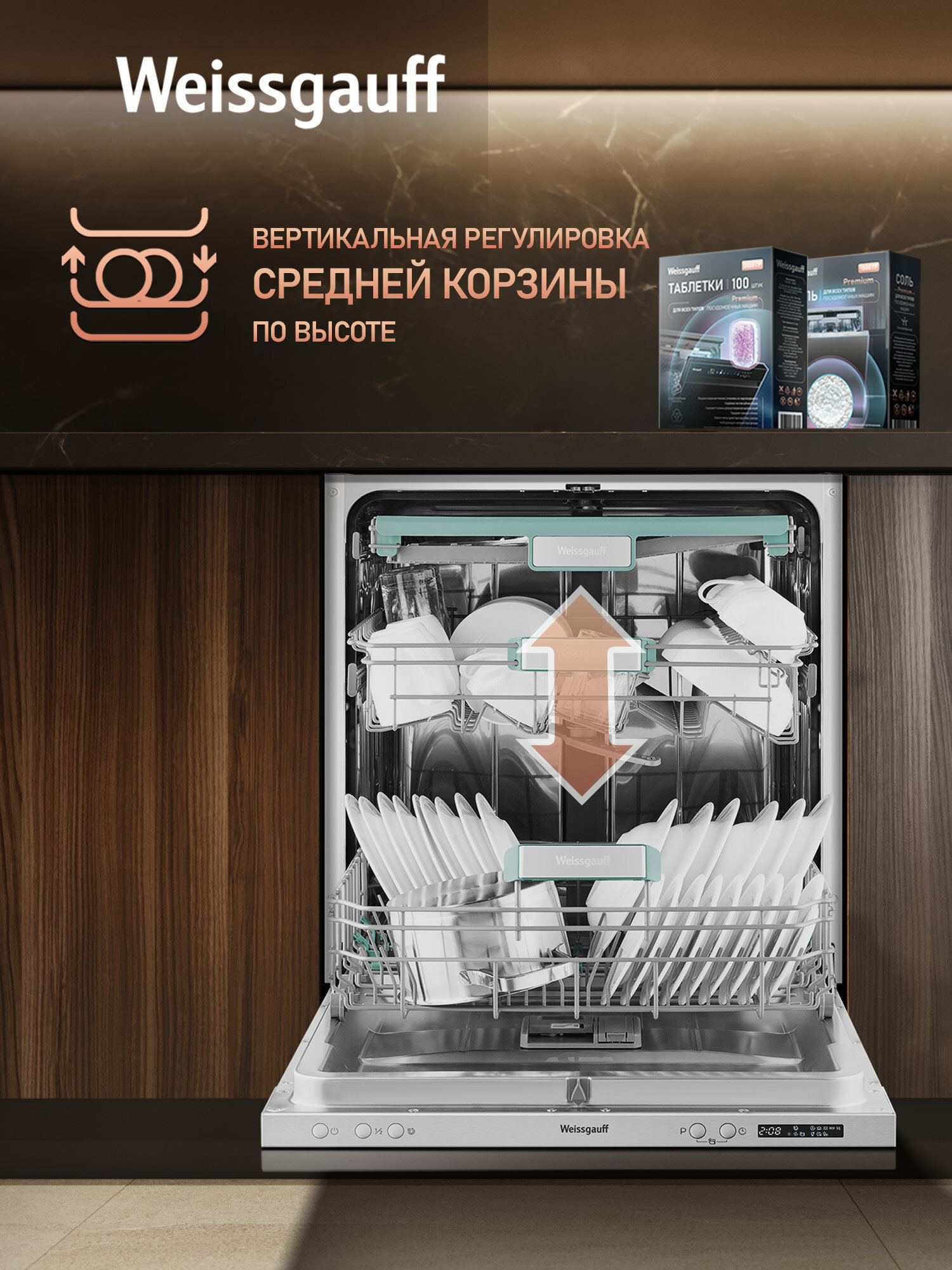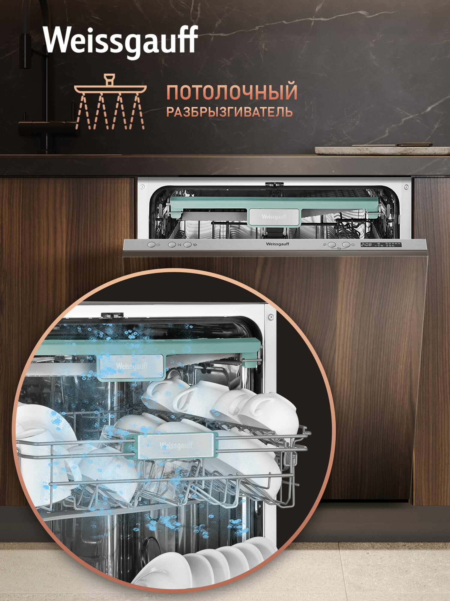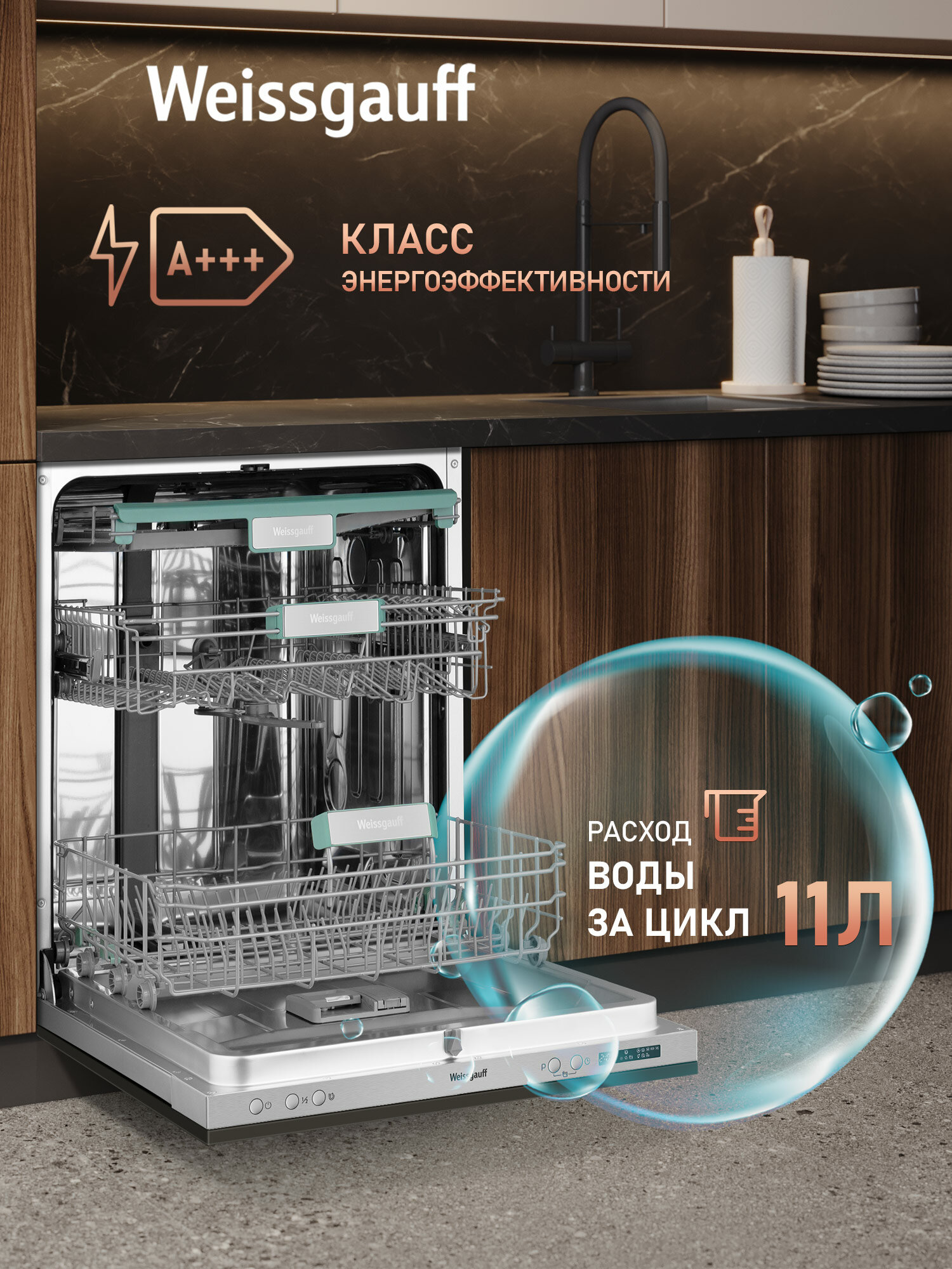 Встраиваемая посудомоечная машина с проекцией времени на полу и авто-открыванием Weissgauff BDW 6063 D Timer Floor интересное:
