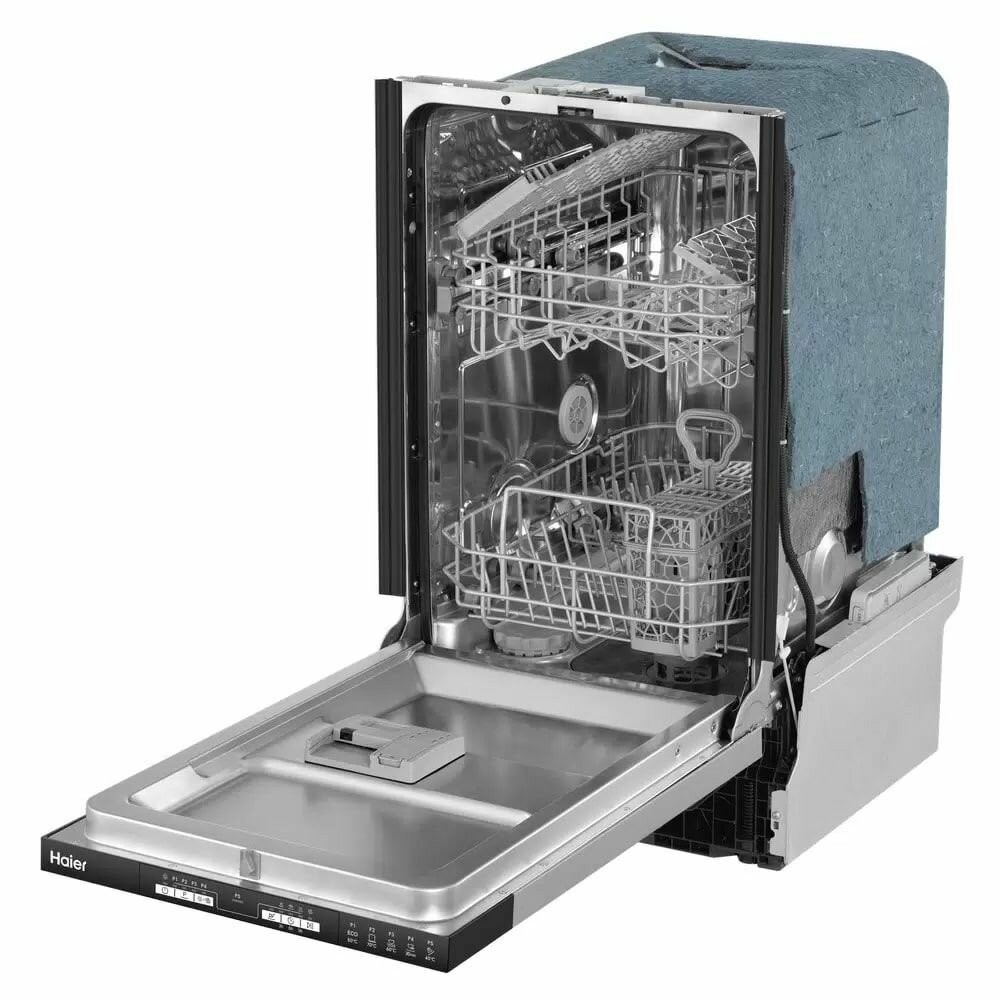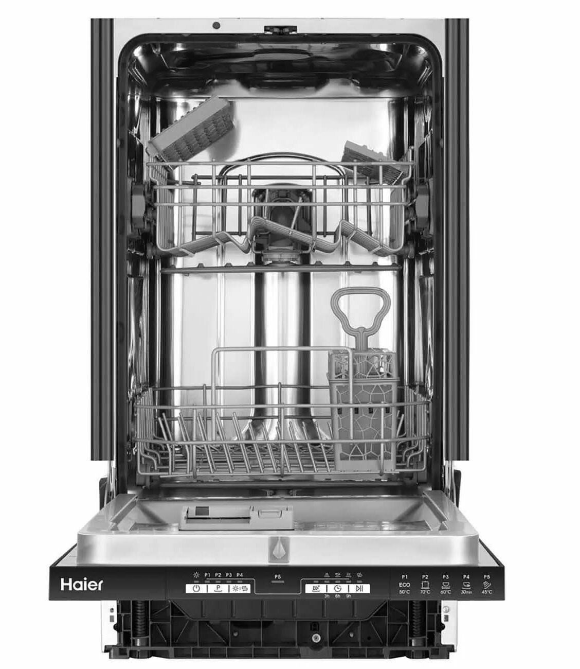 Посудомоечная машина Haier HDWE9-191RU, встраиваемая, ширина 45 см, вместительность 9 комплектов, 5 программ, автоматическое открывание двери интересное: