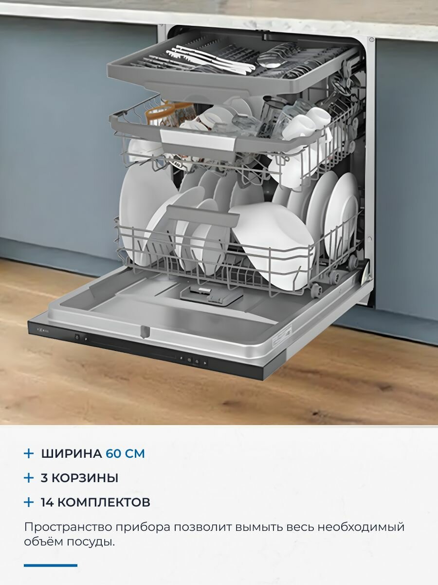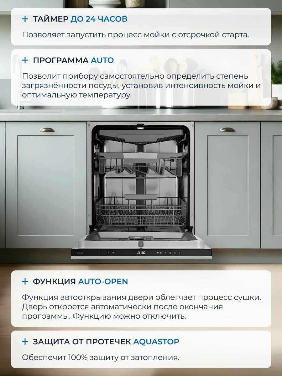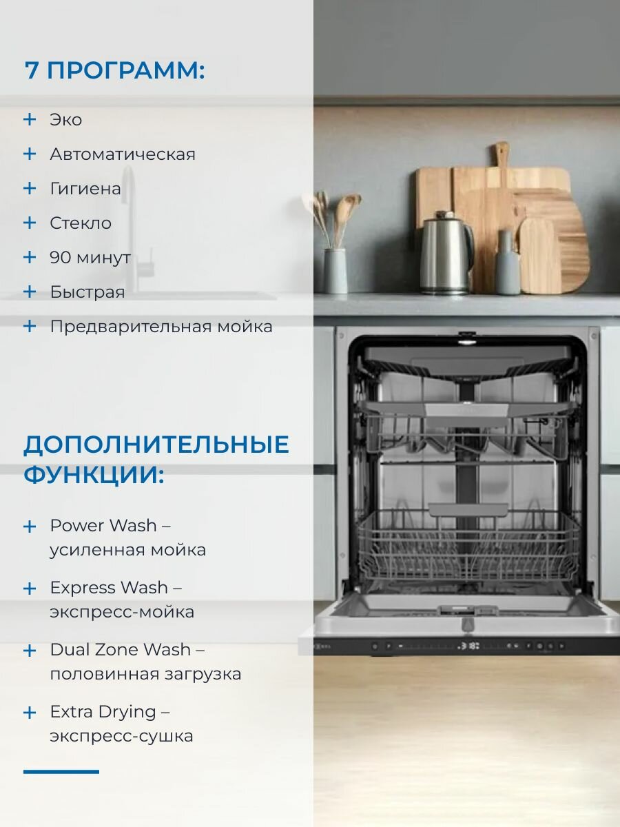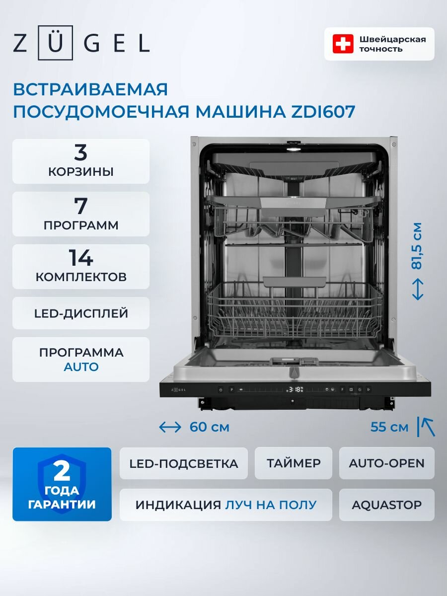 Встраиваемая посудомоечная машина ZUGEL ZDI607, 14 комплектов, 7 программ интересное: