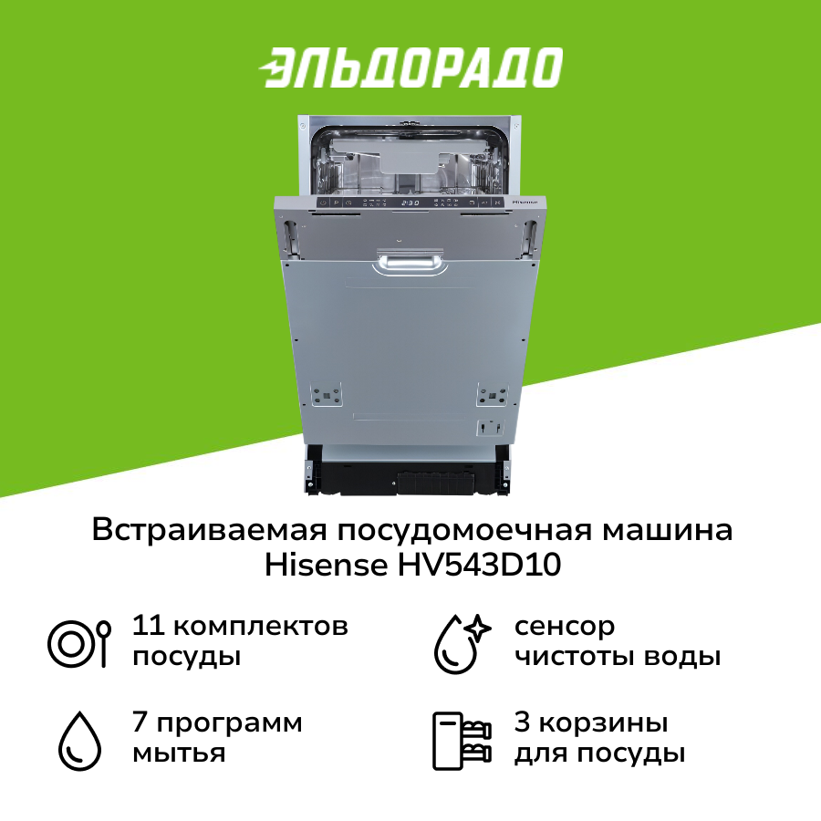 Встраиваемая посудомоечная машина 45 см Hisense HV543D10 интересное: