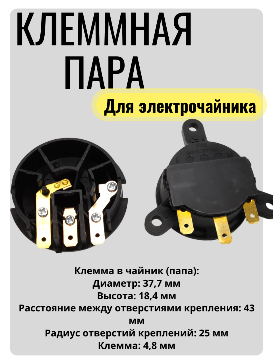 Клеммная пара к электрочайникам универсальная, T125 100-240V 13А TM-XE-B-1 TM-XA-2 интересное: