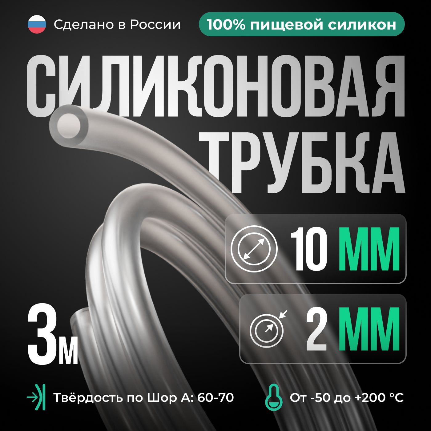 Силиконовая трубка внутренний D10 мм, толщина стенки 2 мм, 3 метра, прозрачный цвет интересное: