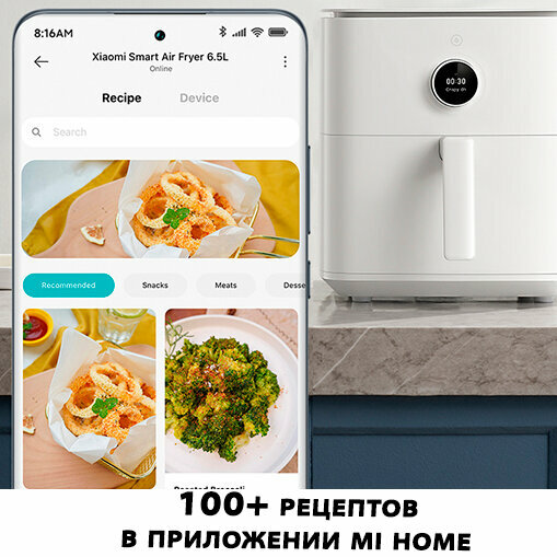 Аэрофритюрница 6,5 литра Smart Air Fryer (MAF10) EU-Русская версия. Цвет: белый интересное: