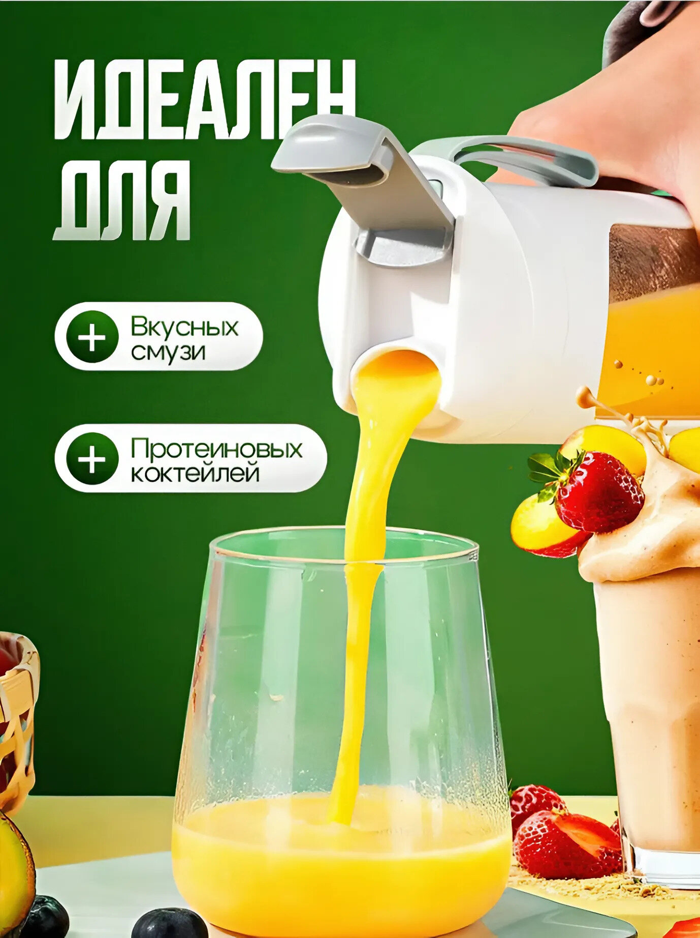 Блендер для смузи и коктейлей мощный с USB зарядкой, цвет зеленый интересное: