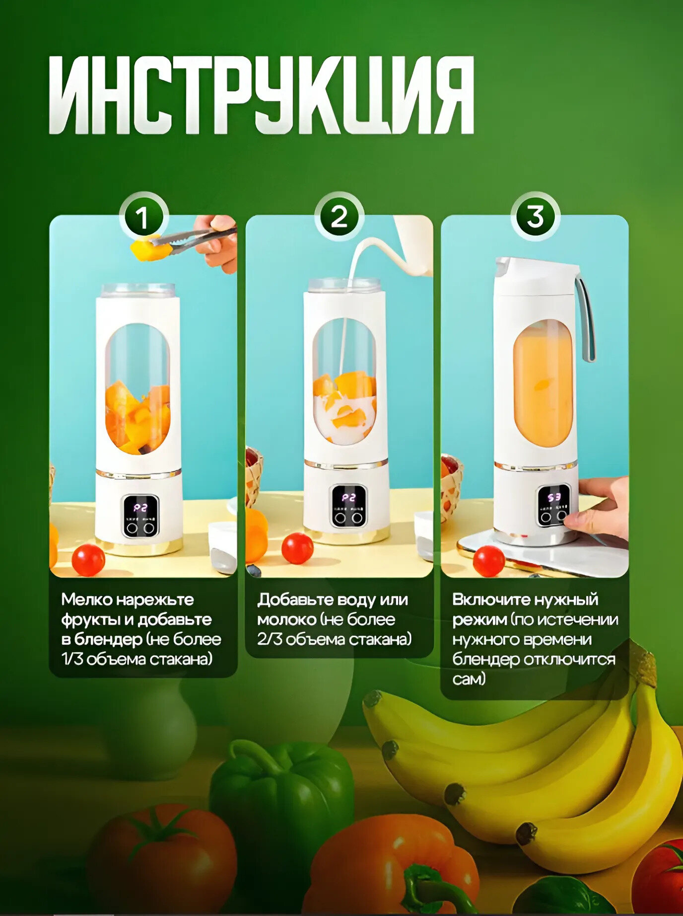 Ниже Вы можете прочитать отзывы на Блендер для смузи и коктейлей мощный с USB зарядкой, цвет зеленый, ознакомится с подробными характеристиками, посмотреть интересные обзоры и фотографии на Блендер для смузи и коктейлей мощный с USB зарядкой, цвет зеленый.
