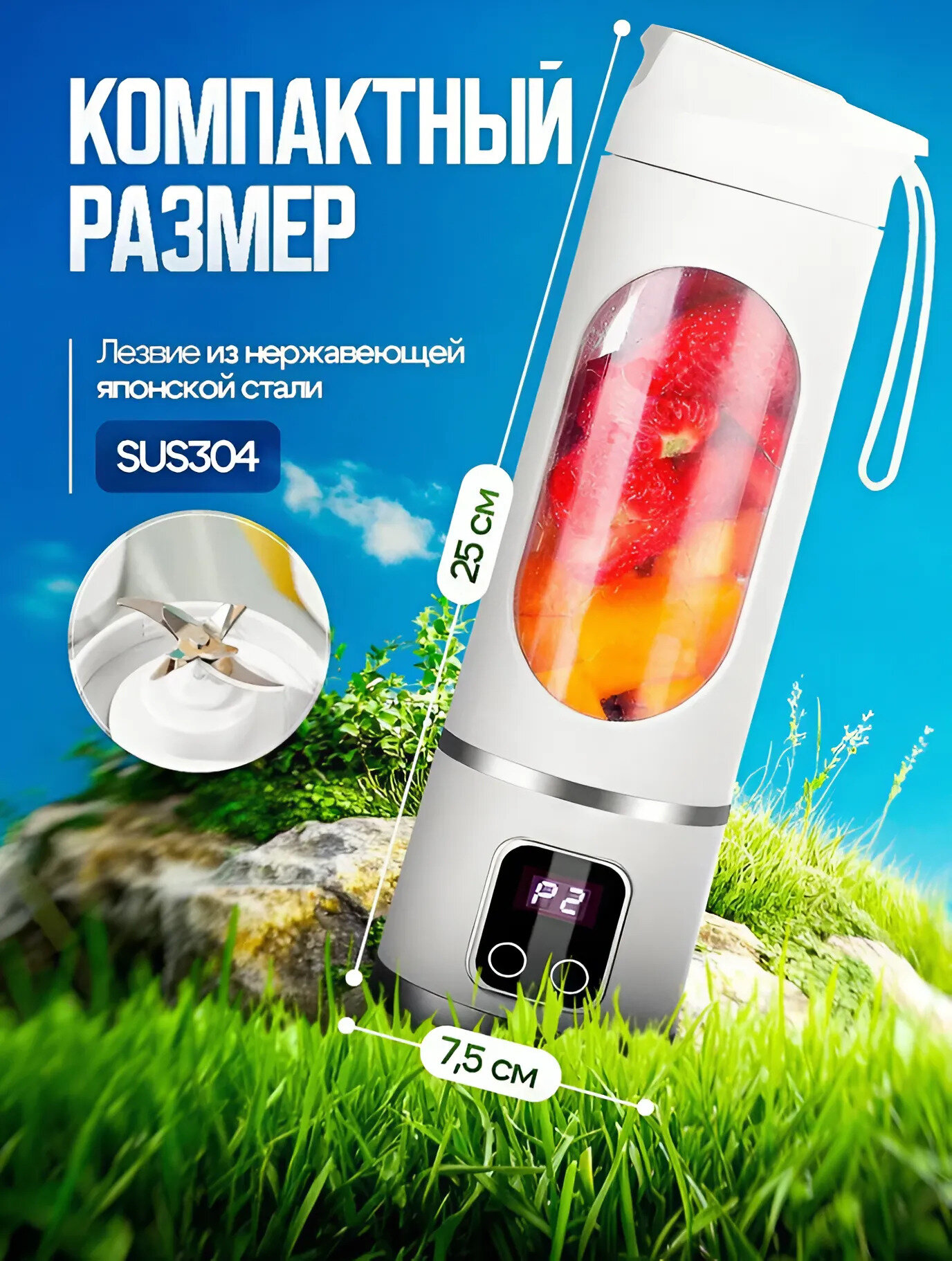 Блендер для смузи и коктейлей мощный с USB зарядкой, цвет белый