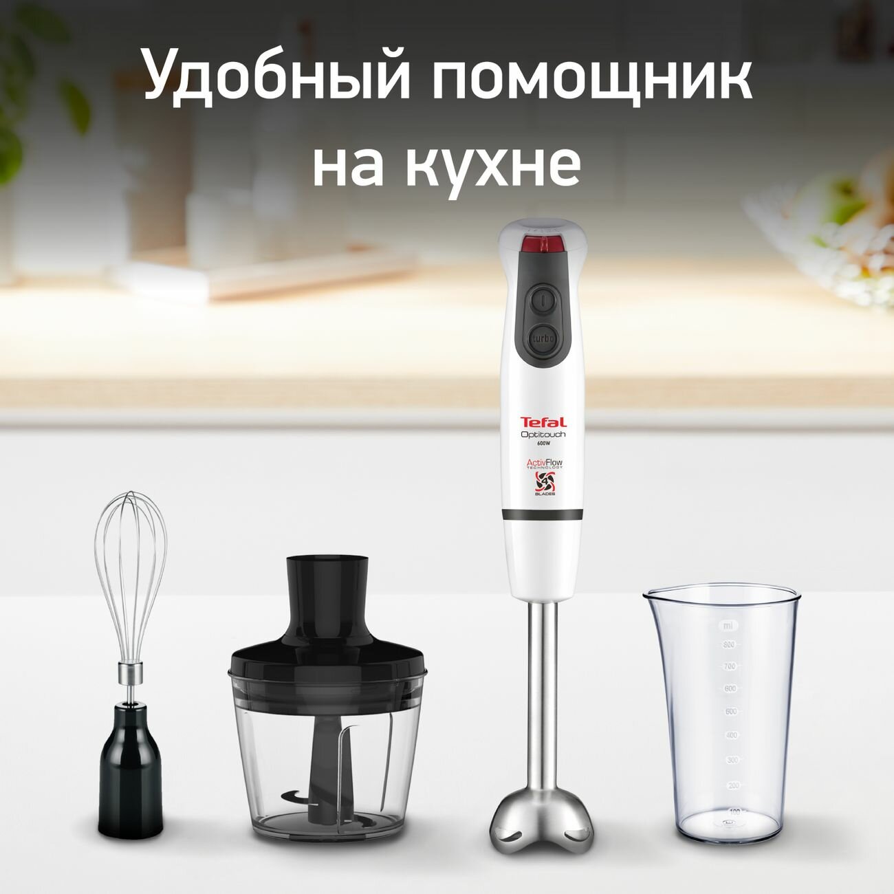 Погружной блендер Tefal Optitouch HB833132, 600 Вт, белый, new интересное: