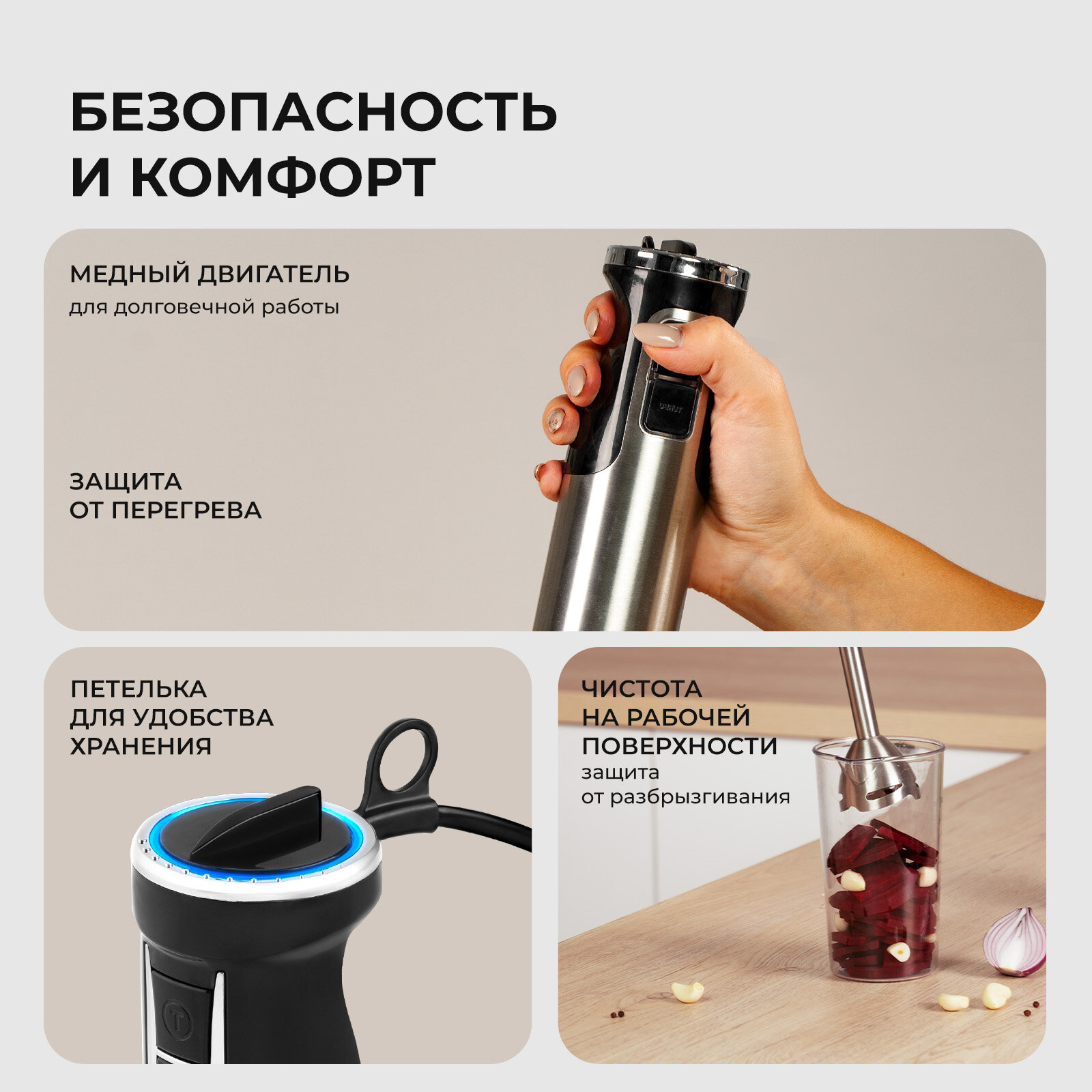 Погружной блендер GALAXY LINE GL2136, 1350Вт, 3 насадки, мерный стакан, LED-подсветка интересное: